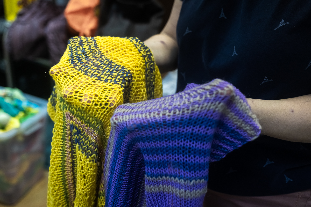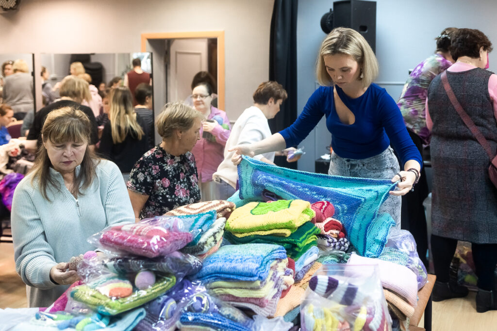 Хотя в помещении, которое выделяет для ежемесячного общего сбора один из городских досуговых центров (своего пространства у организации нет), всем активным участникам проекта никак не поместиться, новые волонтеры всегда нужны. «Невозможно все время вязать большими объемами, — говорит Анастасия Алехнович. — Устаешь, выгораешь. Я сама полтора года спицы в руки не брала. Это нормально. Поэтому чем нас больше, тем лучше».