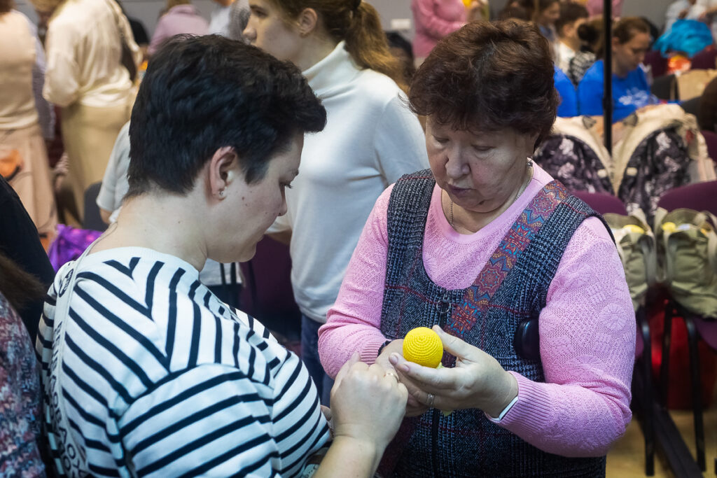 Сама Оксана первый раз тоже пришла с «неправильным» пледом. А как-то привезла целых 17 комплектов с маленькими шапками. «Ничего, все перевязала», — говорит. «Я как-то перевязывала плед четыре раза, — признается другая волонтер. — Последний раз думала, если не получится — то все. Но получилось».