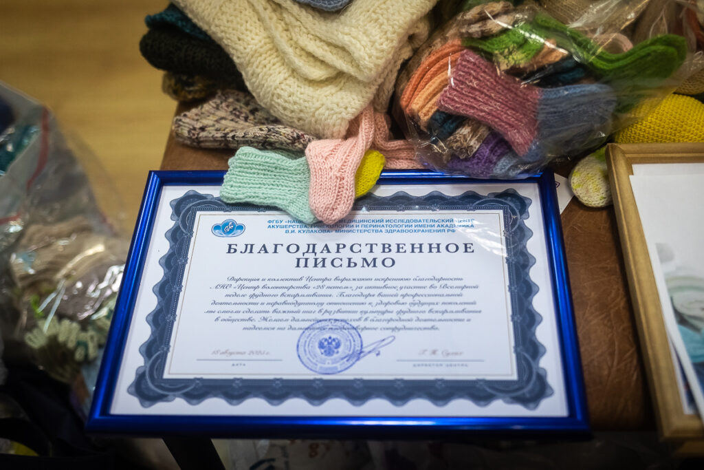 Несмотря на то что объемы, которые развозят по роддомам волонтеры после своих ежемесячных встреч, впечатляют, на самом деле это все равно не покрывает все потребности города. Ежедневно в Москве раньше срока рождаются десятки детей. Если они долго находятся в отделении выхаживания, то им требуется не один комплект. После нескольких стерилизаций вязаные изделия портятся.