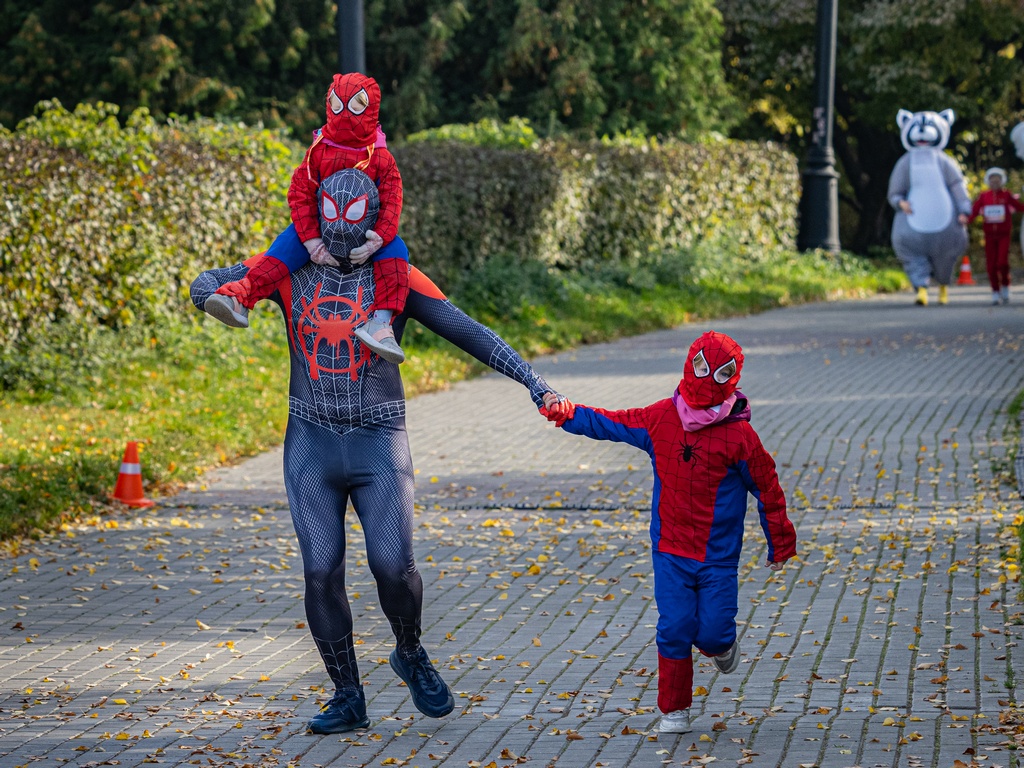 Также организаторы провели костюмированный забег. На дорожках Измайловского парка можно было встретить Марио, человека-яичницу, семью, состоящую из Человеков-пауков, и множество других героев.