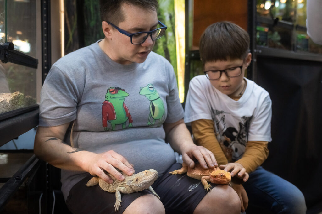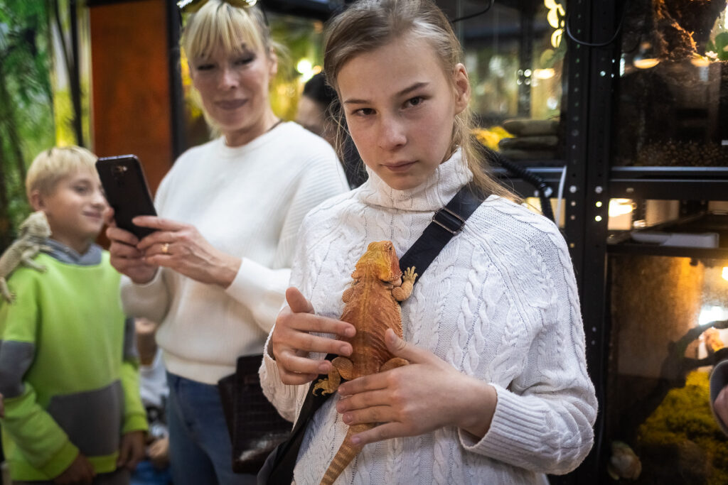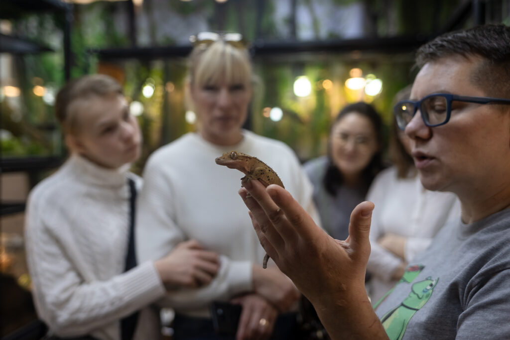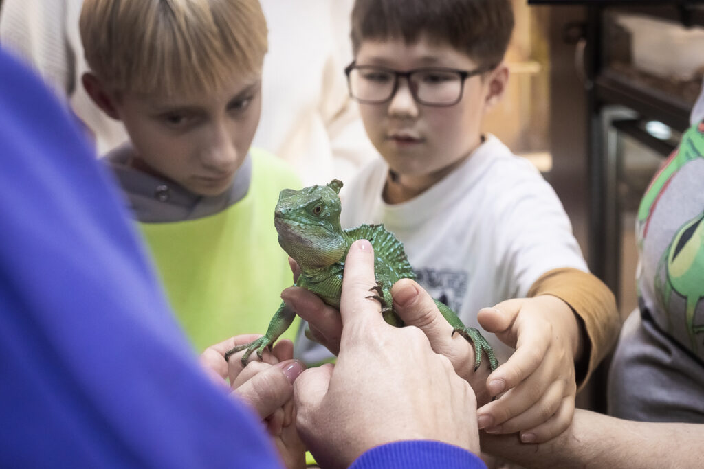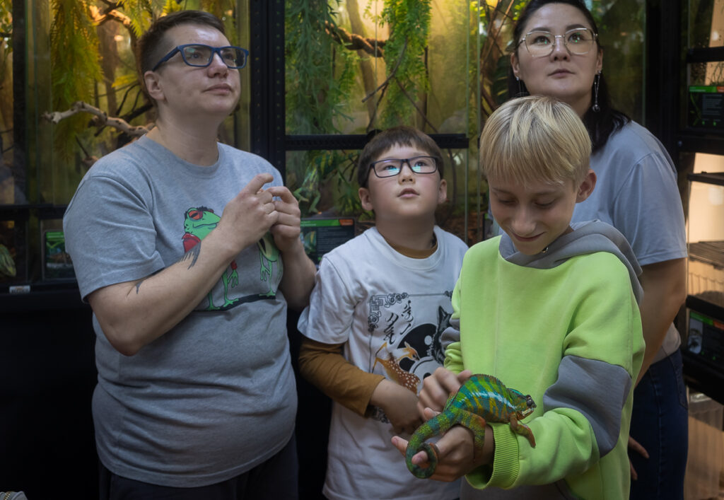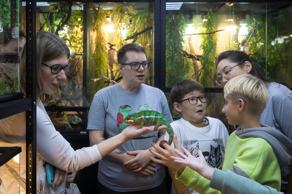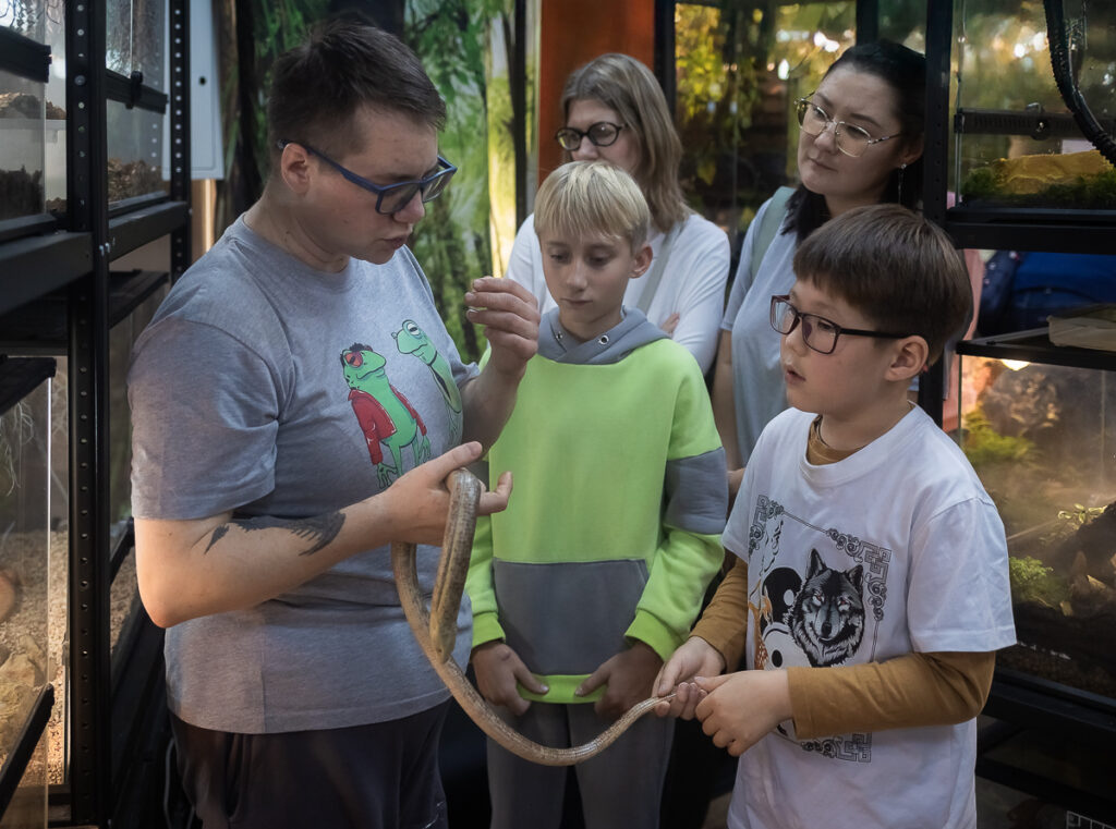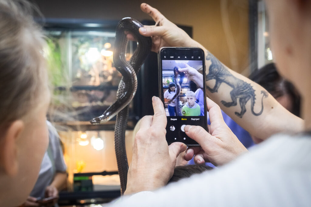 Все увлеченно рассматривают экзотических животных, позируют с бабочками, змей побаиваются, но все же протягивают к ним руки, а в перерыве обсуждают, как будут поздравлять офтальмологов, сотрудничающих с фондом, с их профессиональным праздником. «В прошлом году делали видео, где мамы и дети говорили им теплые слова, — рассказывает Екатерина и показывает видео на телефоне. Она активно координирует процесс. — В этом году хотим что-то подобное».