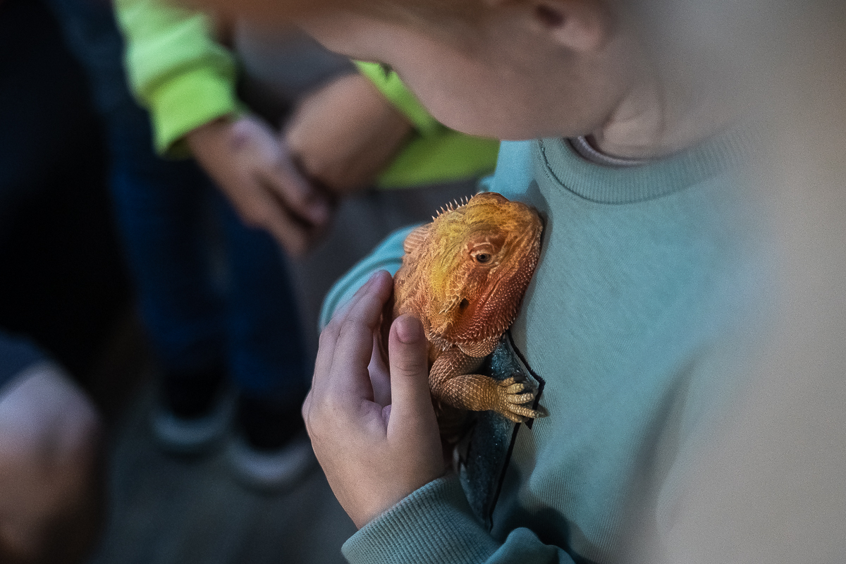 Все увлеченно рассматривают экзотических животных, позируют с бабочками, змей побаиваются, но все же протягивают к ним руки, а в перерыве обсуждают, как будут поздравлять офтальмологов, сотрудничающих с фондом, с их профессиональным праздником. «В прошлом году делали видео, где мамы и дети говорили им теплые слова, — рассказывает Екатерина и показывает видео на телефоне. Она активно координирует процесс. — В этом году хотим что-то подобное».