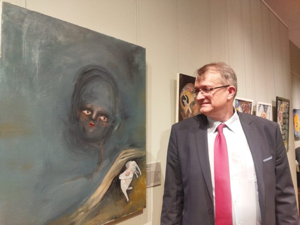 На эту выставку мы пригласили художников, которые занимаются практически профессионально искусством, живописью и графикой, столкнувшихся в прошлом с ментальным нездоровьем или интересующихся этой темой. И соединили их работы с работами нижегородских художников, которые так или иначе связаны с какими-то психологическими или ментальными проблемами.