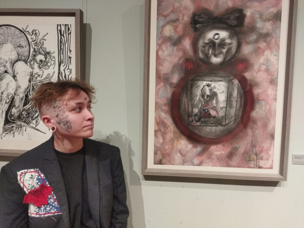 «Для меня такие выставки — возможность того, чтобы тебя заметили, — признается художник. — По большей части я рисую в стол. Иногда публикуешь это где-то в интернете, и никто не чувствует, не видит, не знает вообще, кто ты такой и где ты находишься. А выставка — возможность, чтобы люди о тебе узнали и твои работы увидели. А уже второстепенная цель — донести что-то людям.