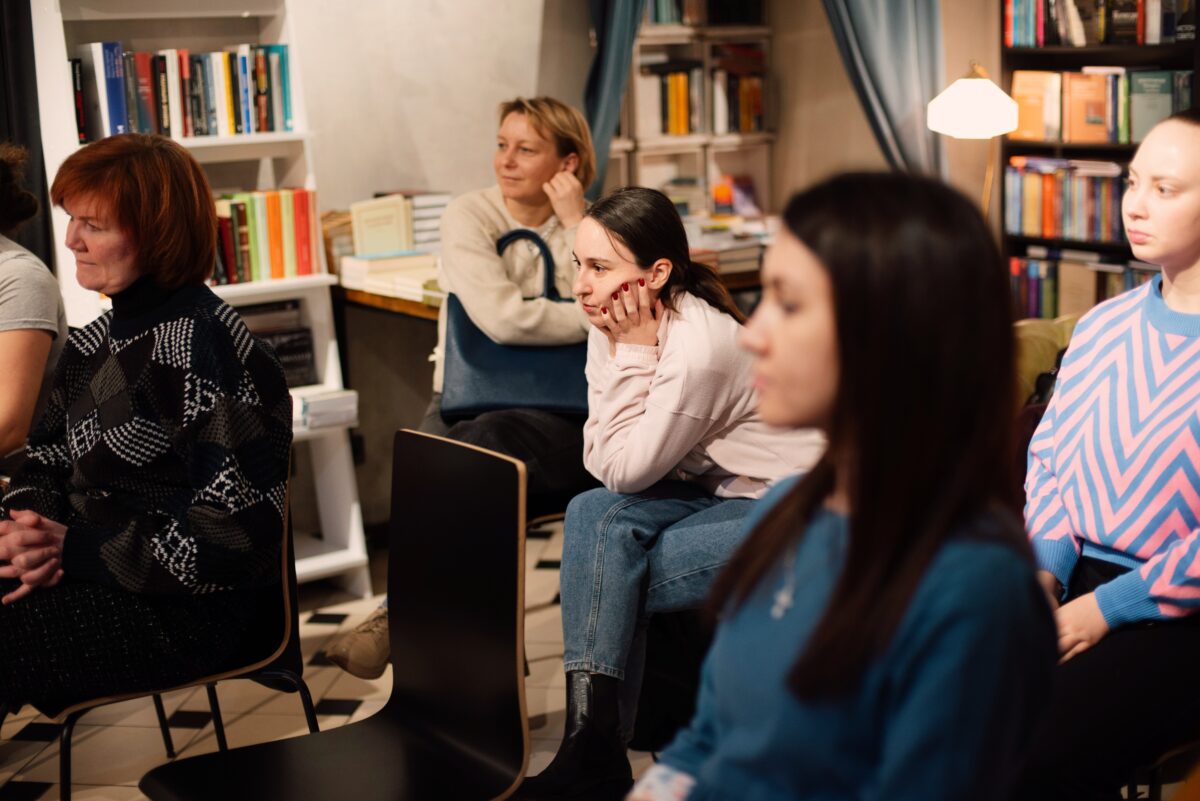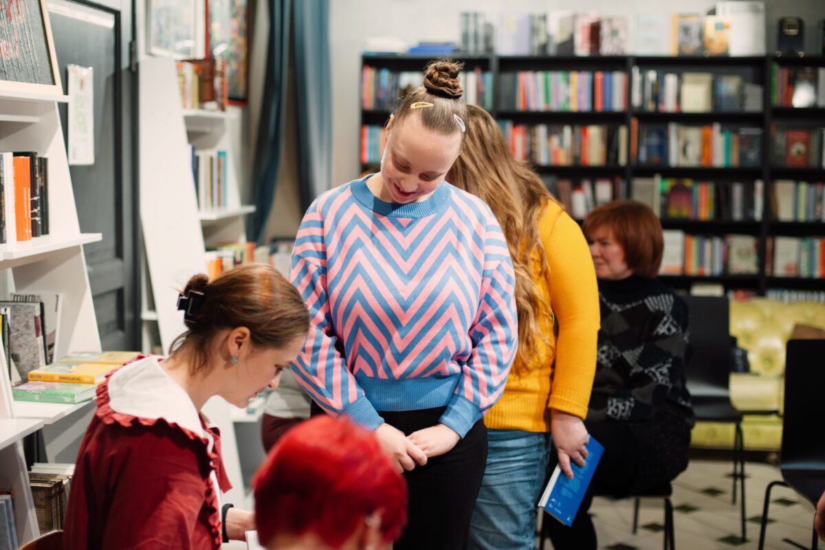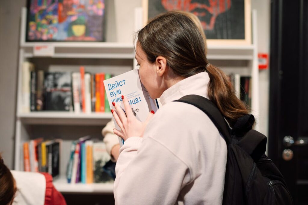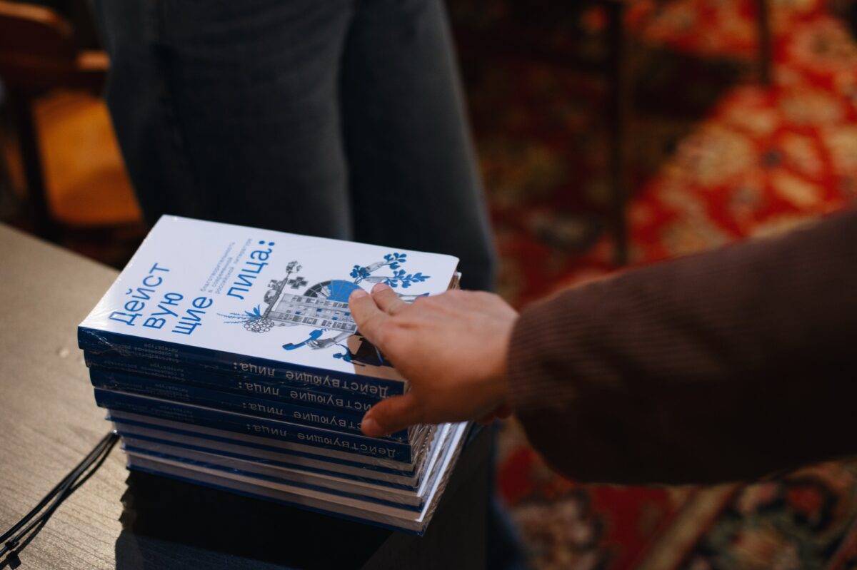Презентация прошла по проекту «Люди читают рассказы — это встречи, на которых авторы читают свои произведения публике. Именно такой встречей стала и презентация «Действующих лиц», и потому ведущая проекта писательница Яна Верзун назвала ее «Люди читают рассказы о заботе и поддержке».