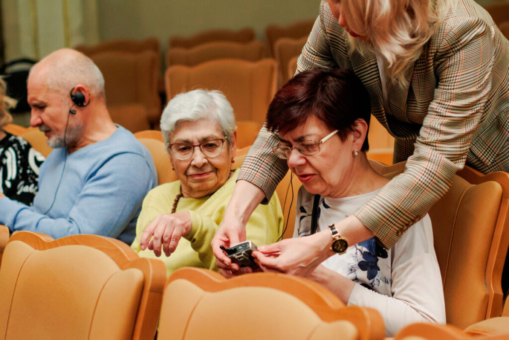 Специалисты программы «Особый взгляд» разработали отличную вещь – одноименное мобильное приложение для тифлокомментирования. Слабовидящие люди его скачивают, и их смартфоны, по сути, становятся приемниками, а смартфон тифлокомментатора – передатчиком. То есть в театр они приходят со своим оборудованием. Это значительно упрощает и удешевляет процесс. Ведь раньше в театре можно было организовать тифлокомментирование, только имея специальное оборудование, полученное по гранту или купленное самостоятельно. Но любое оборудование имеет свойство ломаться. Приложение страхует нас от подобной ситуации.