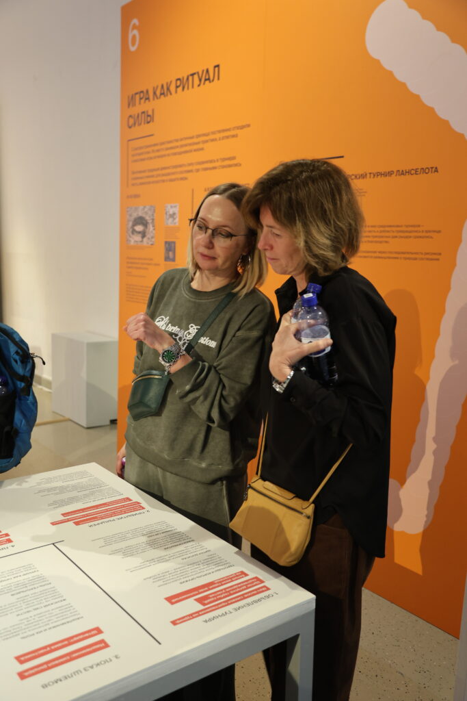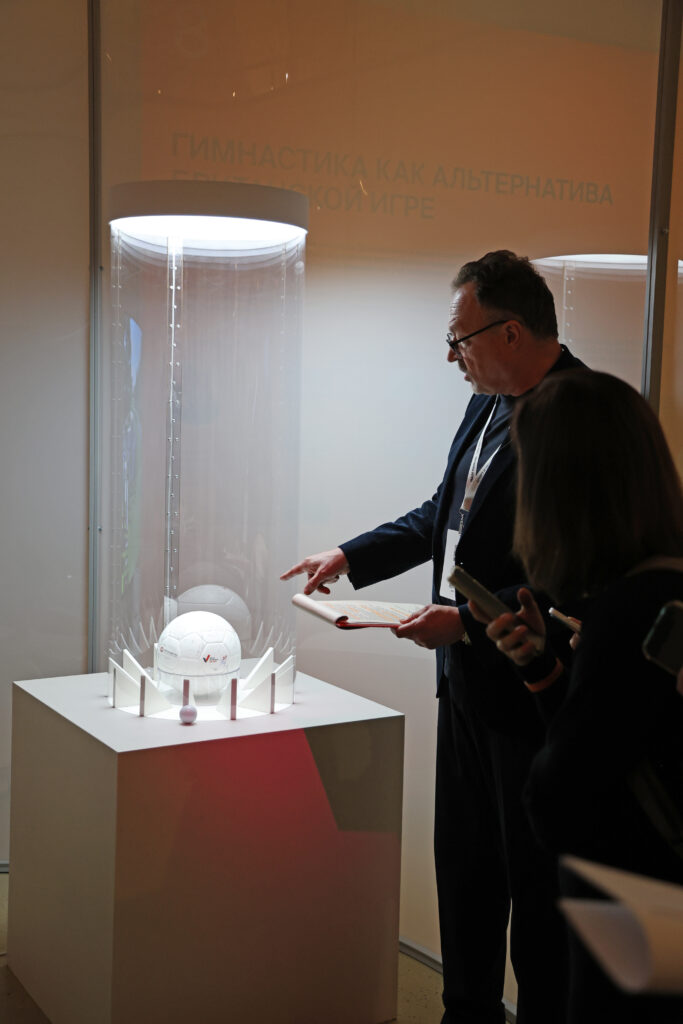 Экскурсию по выставке для журналистов провел не просто гид, а легендарный спортивный комментатор Виктор Гусев. Для него этот проект стал своего рода «дополнительным временем» (как в футболе) и возможностью взглянуть на спорт под другим, антропологическим, углом.