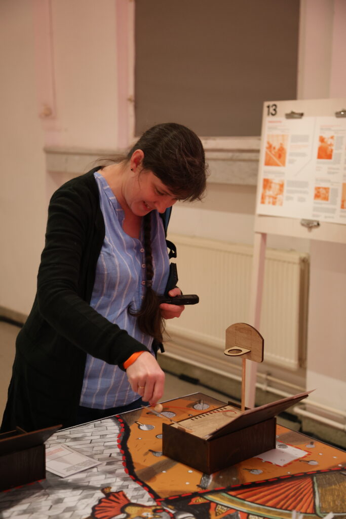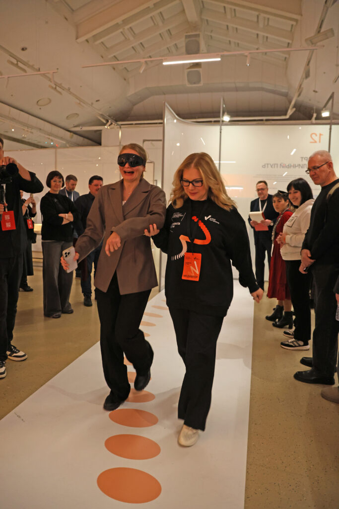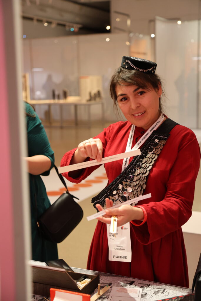 На экспозиции гостям предлагается сыграть в игру. Она основана на интервью с участниками проектов-победителями конкурса «Спорт для всех» Фонда Потанина и показывает, как спорт меняет жизнь.
