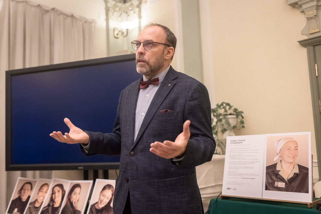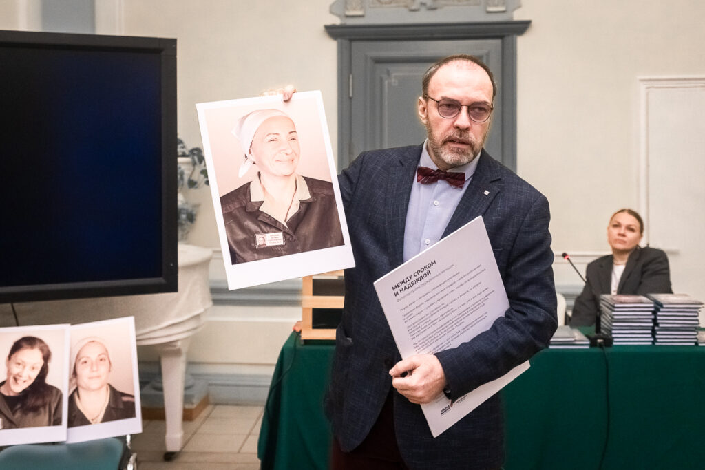 «Мы регулярно бываем… хотел сказать ”в тюрьме”, но вспомнил, что работники пенитенциарной системы не любят это слово. Они говорят: ”У нас исправительные учреждения”, — рассказывает, представляя книгу и фотовыставку, Андрей Сорокин, писатель, преподаватель РАНХиГС, общественный деятель. — И никто ни на каких официальных мероприятиях этой системы не скажет, что женщины там страдают и болеют. Скажут: ”Женщины у нас исправляются”».