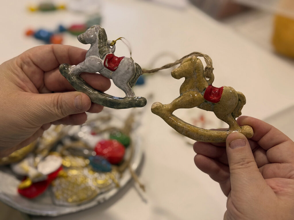 Самые ходовые товары на Новый год – это изделия из керамики и ткацкие игрушки. И, кончено, популярны символы года: лошади, быки, овечки. Хотя, когда в 2023 году отмечали Год змеи, заказы с изображением символа года упали, говорит Мария.