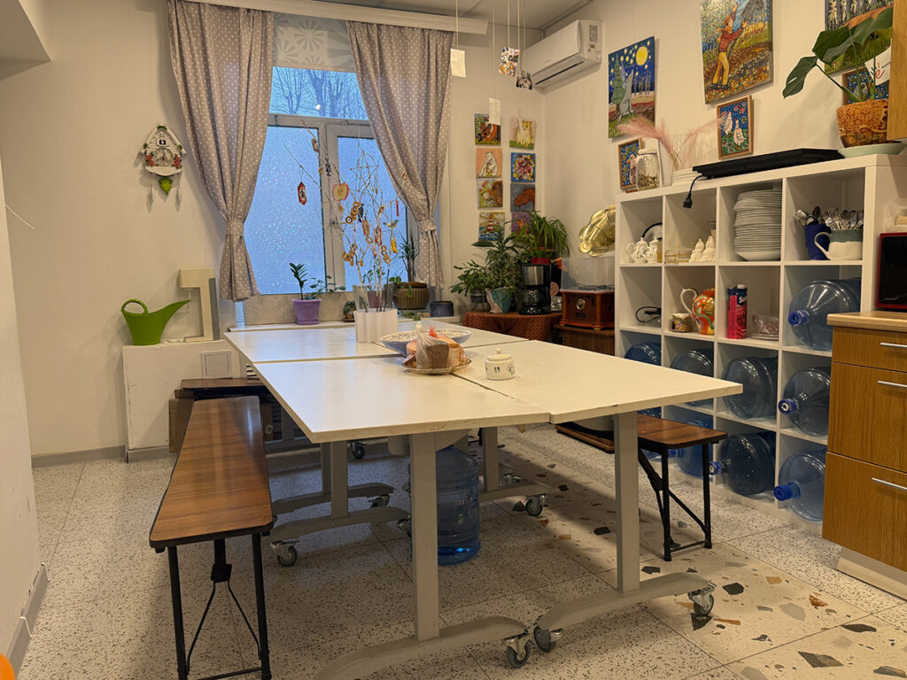 Пока мы говорим с Марией, наступает время обеда, и на кухню начинают подходить подопечные. После перерыва они поменяются мастерскими: кто-то пойдет рисовать, кто-то – заниматься ткачеством.