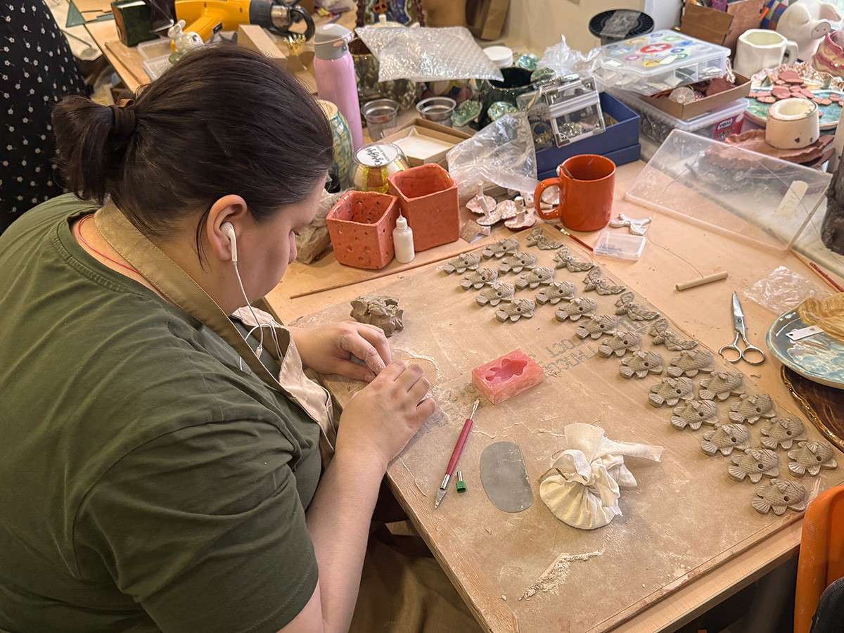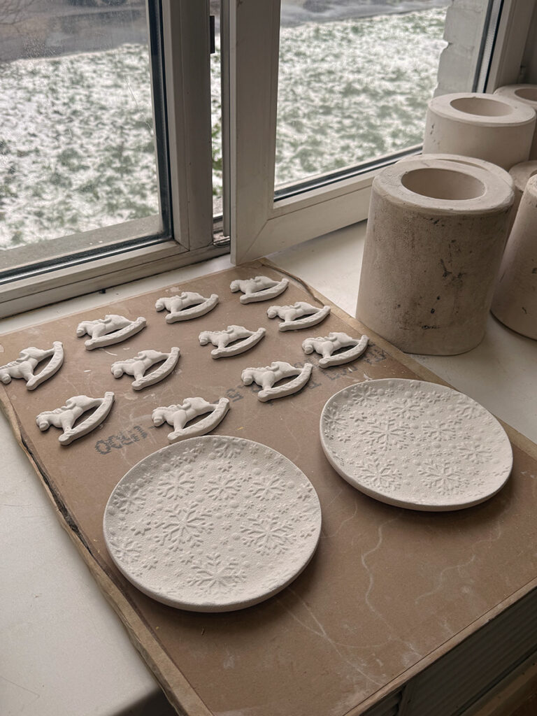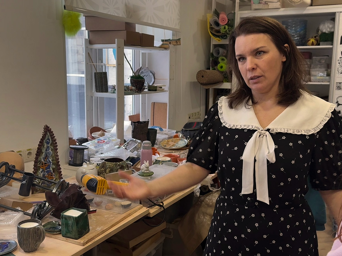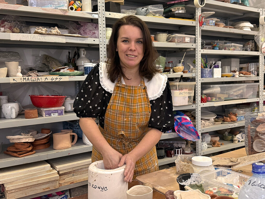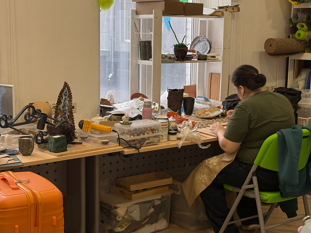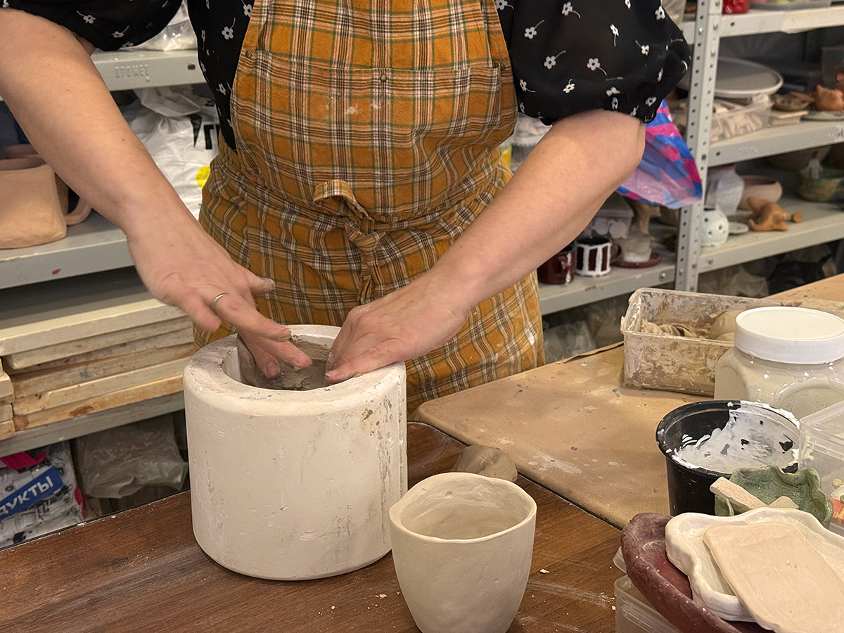 Мы с Марией перемещаемся в соседнюю комнату, где сидит всего один мастер. Ее зовут Саша – она делает керамические заготовки, которые почти никогда не требуют доработки. Для мастерской это очень важно, ведь все эти товары пойдут на продажу и должны быть хорошего качества.
