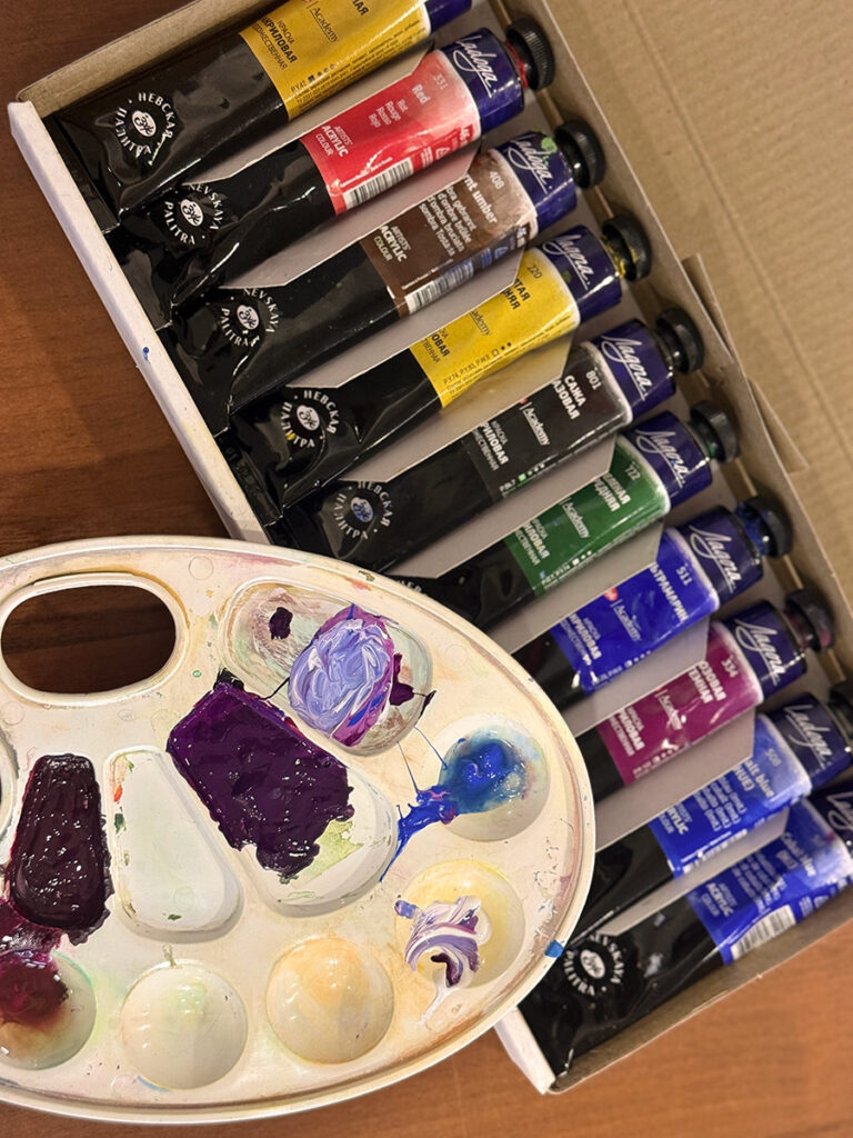 «Сейчас одна выставка у нас идет в библиотеке № 121, еще одна выставка – здесь, в “Сундуке”. А третья готовится, в воскресенье развеска – в трапезной храма Трех Святителей на Кулишках», – рассказывает Наталия.