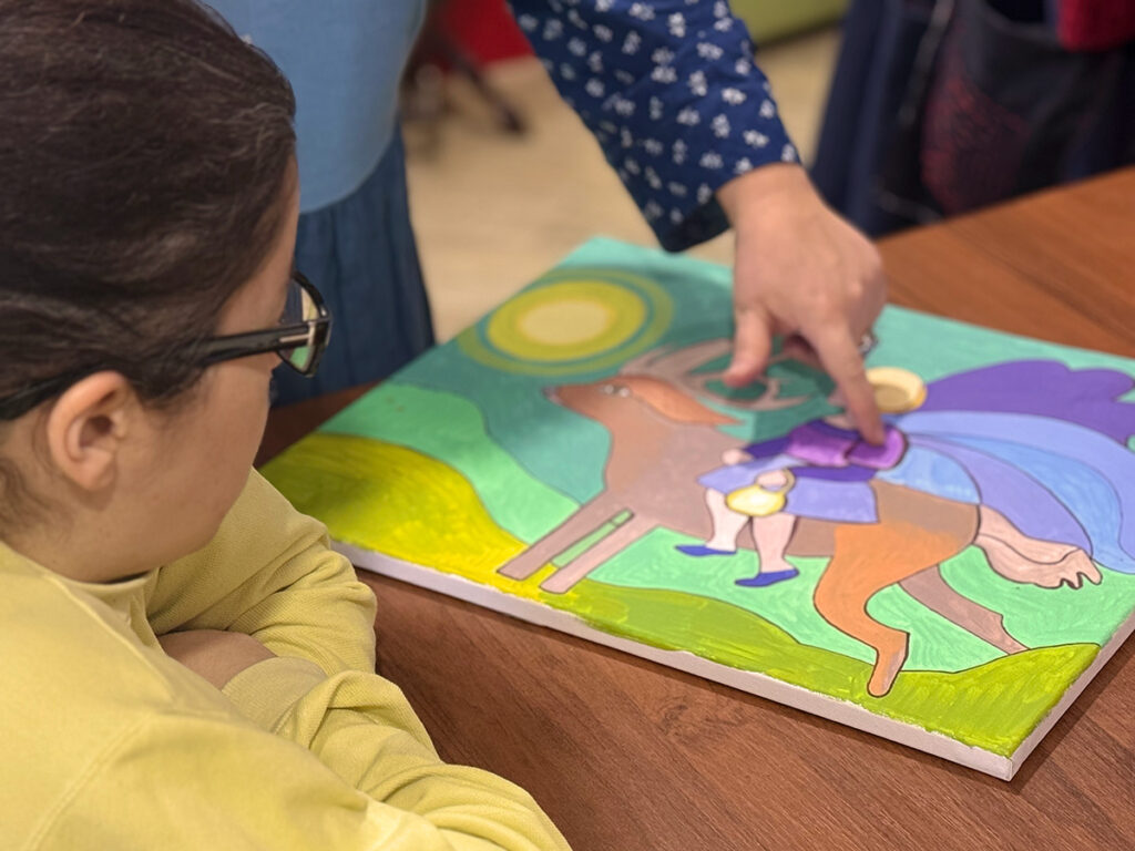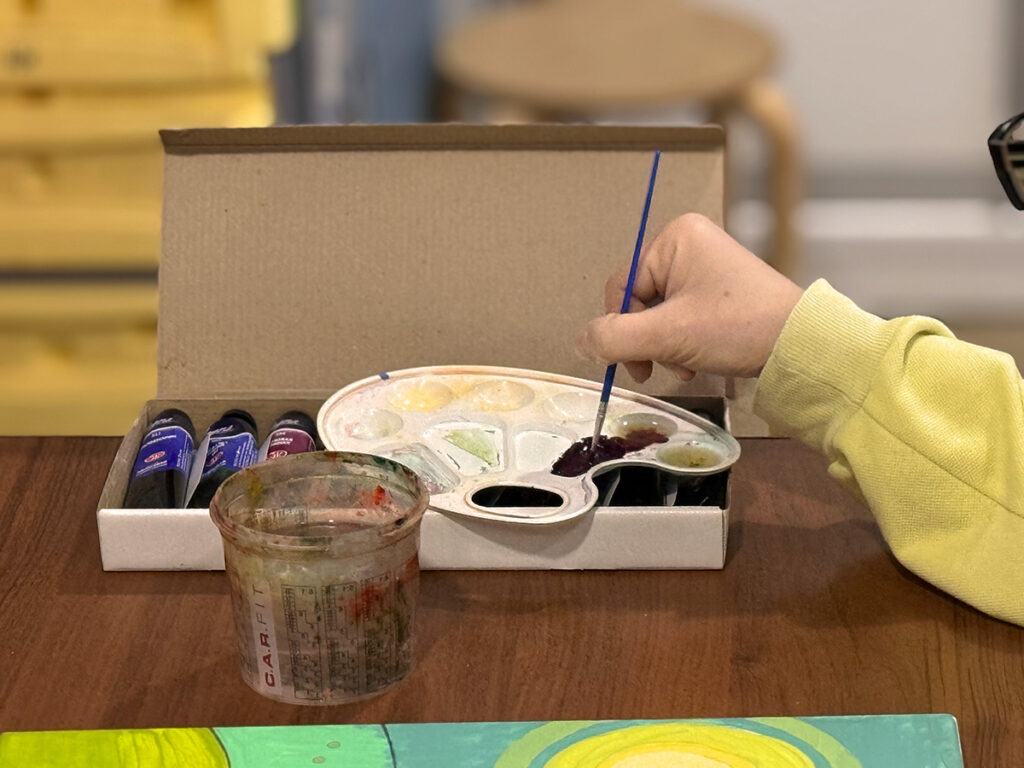 В комнате, где занята Саша, стоит огромный оранжевый чемодан – в день очередной ярмарки его (и еще один чемодан) наполняют работами подопечных и везут на точку. Как отмечает Мария, продаются такие работы хорошо.