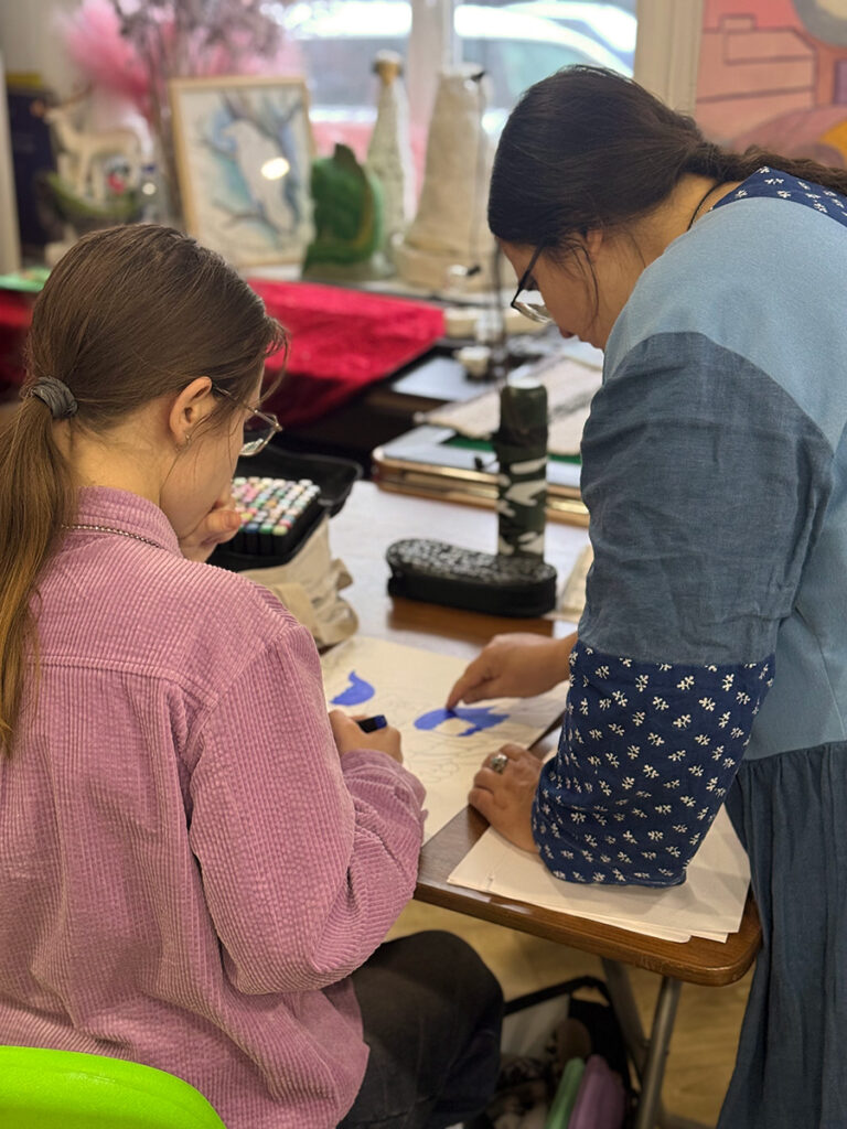Руководит процессом мастер-наставник Наталья Золотарева. Она помогает художникам воплотить на бумаге то, что нужно. Особенно, когда есть конкретный запрос для выставки.