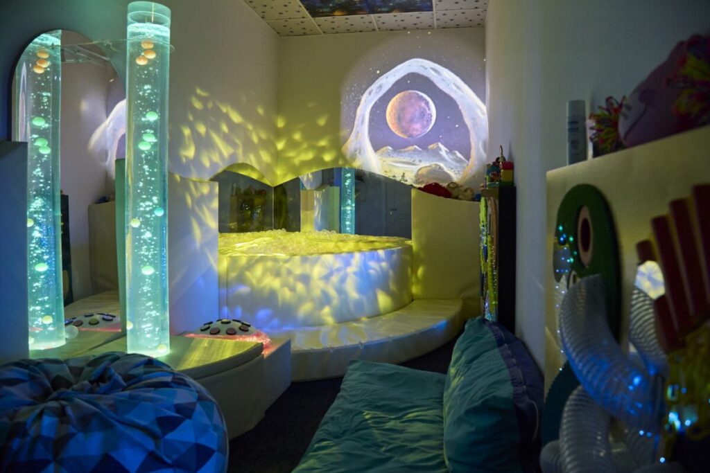 Вместо белых халатов — толстовки с логотипом. Вместо скучных упражнений — сенсорная комната, где ребенок может развиваться, а мама отдохнуть. Еда в столовой как домашняя. Уютная кухня, где можно попить чаю, игровая, мастер-классы от волонтеров. Кажется, это все мелочи, но ведь именно из них и состоит ощущение жизни.