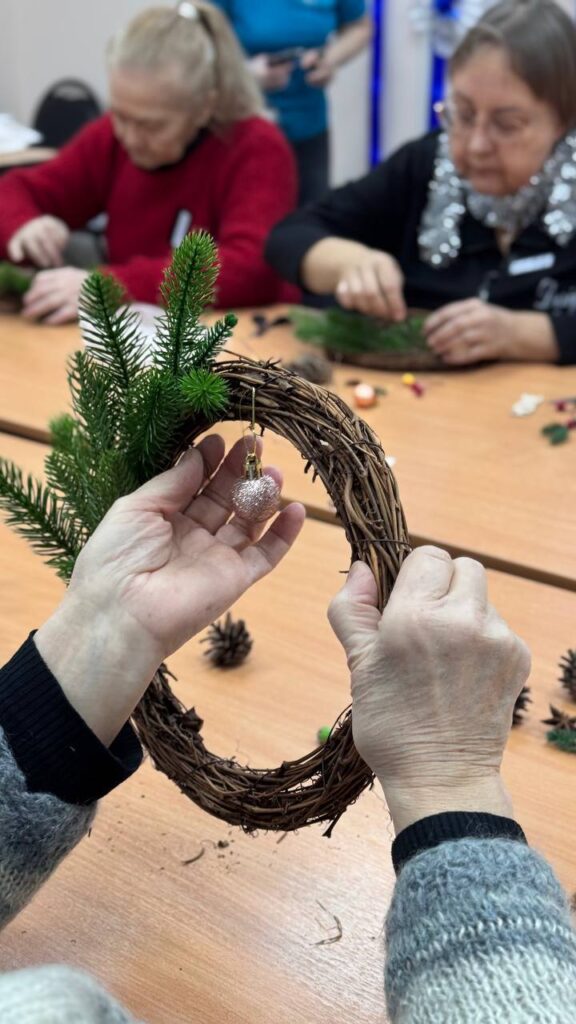 Геронтологический центр предоставляет площадку, а команда проекта и волонтеры берут на себя организацию, подготовку материалов и сопровождение занятий. В декабре запланирован завершающий год мастер-класс: участники создадут новогодний венок из хвойных веток и шишек с праздничным декором.