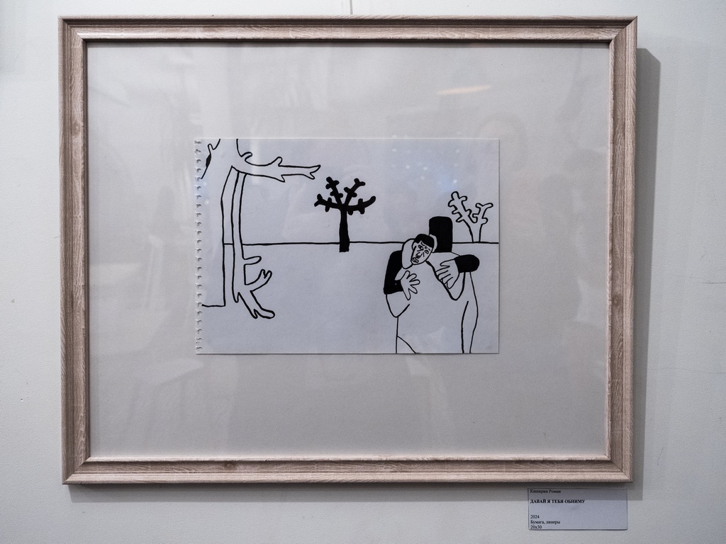 Роман Каширин — сотрудник кафе «Разные зерна» и участник мастерских работающего параллельно с кафе проекта «Открытая кухня», где люди с особенностями получают профессиональные навыки и занимаются творчеством. Его графика тоже представлена на выставке недалеко от акварелей Елены. А кружка, им сделанная, теперь у нее дома — художница ее купила. Вот такой случился диалог без слов у двух творческих личностей.