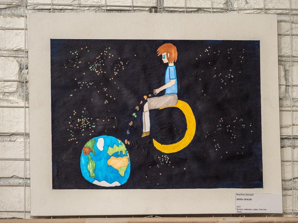 «Мне показалось это стихотворение довольно интересным, и моя работа также символизирует наше кафе. Там мальчик бросает зерна в Землю», — говорит особый художник.