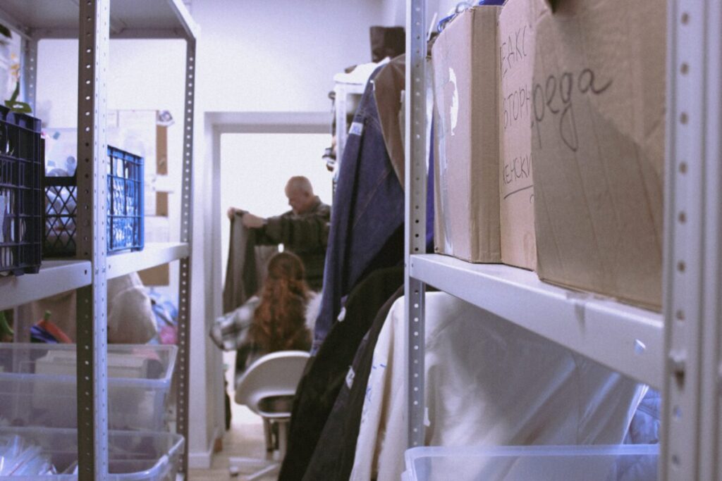 «Составить типичный портрет человека, который приходит в пункт выдачи, сложно. Сначала за курткой пришел молодой человек — не старше 30 лет, гладковыбритый, с тихим и спокойным голосом. Почти следом — пожилой мужчина с большим синяком на лице просил новые ботинки, поскольку у одного почти наполовину отошла подошва.