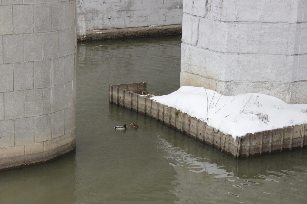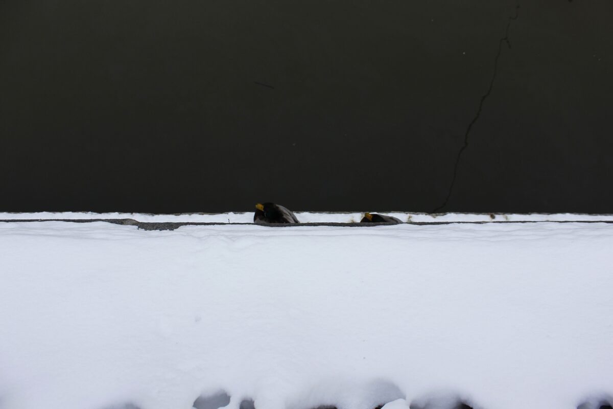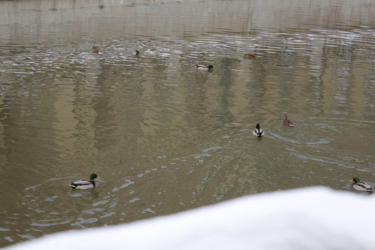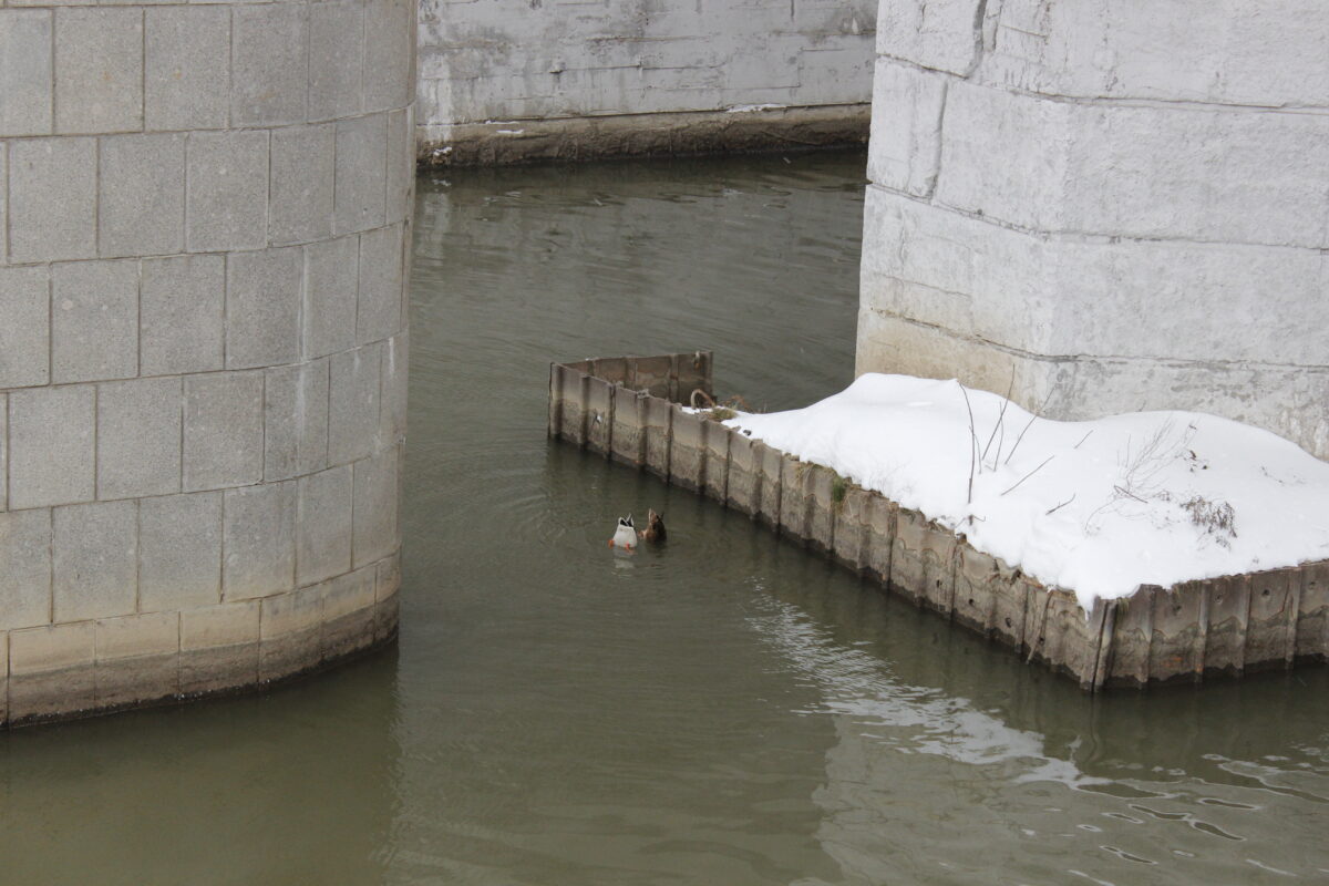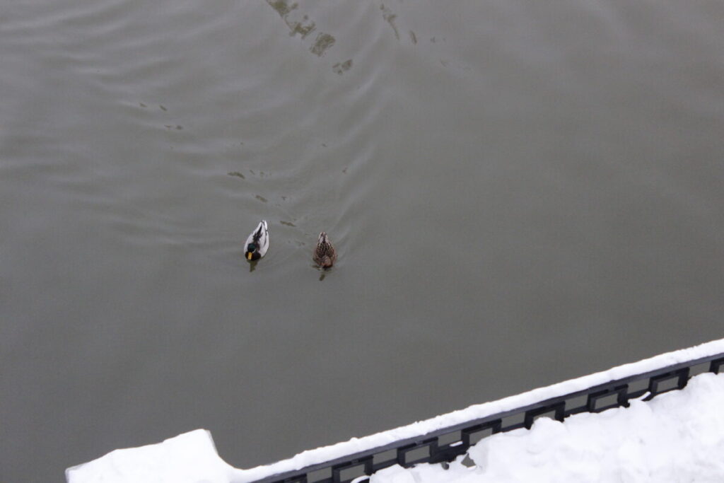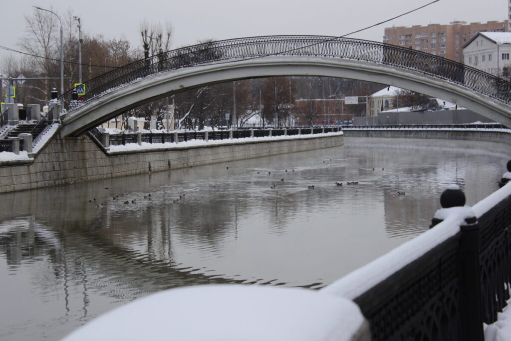 К девяти утра мы выходим на набережную Яузы: речка течет, нетронутая льдом. У Астаховского моста волонтеры готовятся: достают фотоаппарат, бинокль, блокнот и теплые перчатки. У моста на небольших волнах качаются парочки уток. Это кряквы: птицы находят себе партнеров еще осенью, а потом зимуют вместе и к весне выводят потомство.