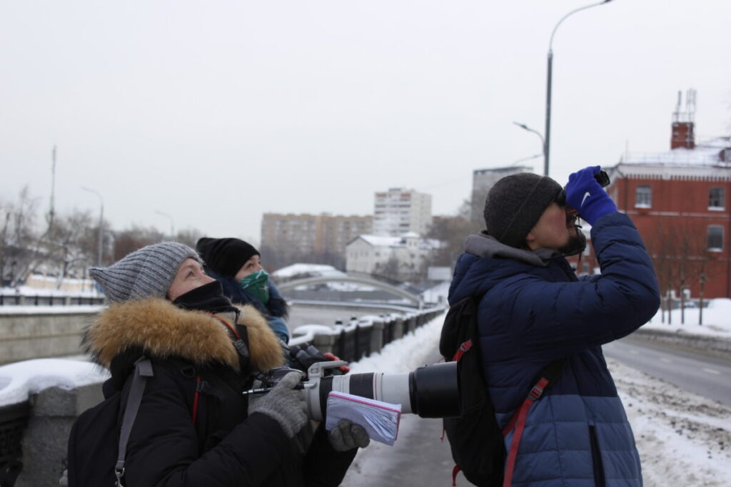 Утром 18 января в Москве столбики термометра показывают тринадцать градусов ниже нуля. В это время дня в электричках и поездах метро не многолюдно, только на «Таганской»-кольцевой, где мы встречаемся с Натальей и Ольгой, волонтерами Союза охраны птиц России, оживленное движение.