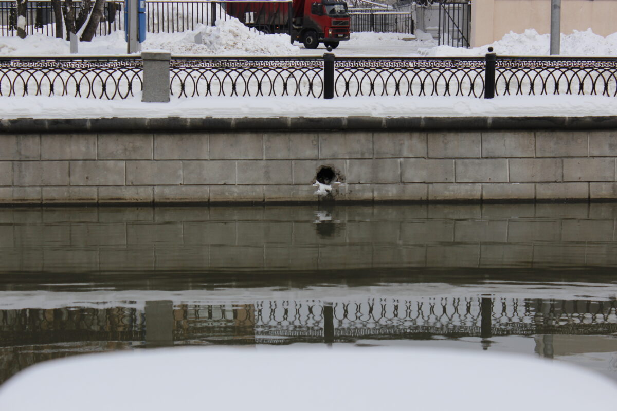 Мы останавливаемся: на противоположном берегу реки виден сквер, в котором на голой рябине копошатся серо-рыжие птицы. Через объектив камеры становится понятно: это сойки, редкий для города вид, обычно они живут в лесу или в парковых зонах. Пока записываем, нас догоняет волонтер Михаил, и уже вчетвером мы идем дальше вдоль набережной.