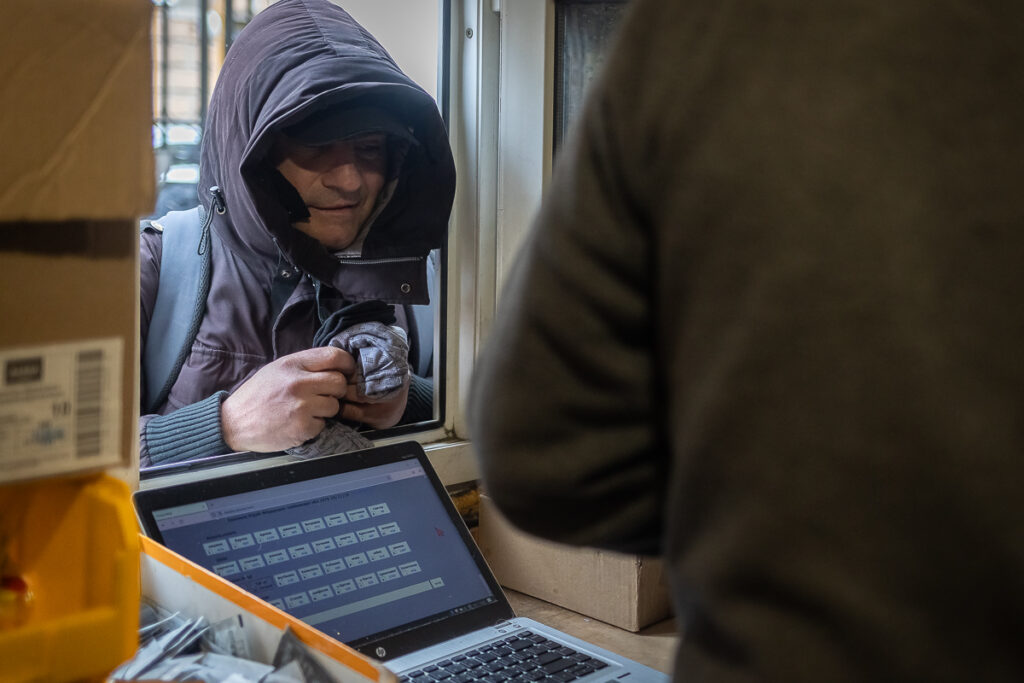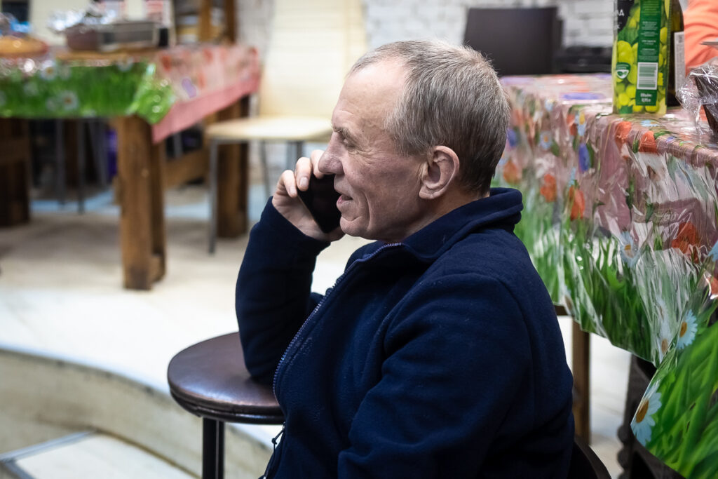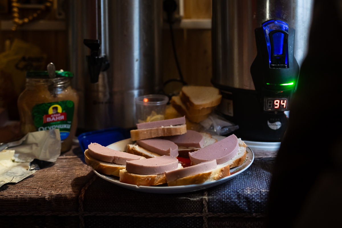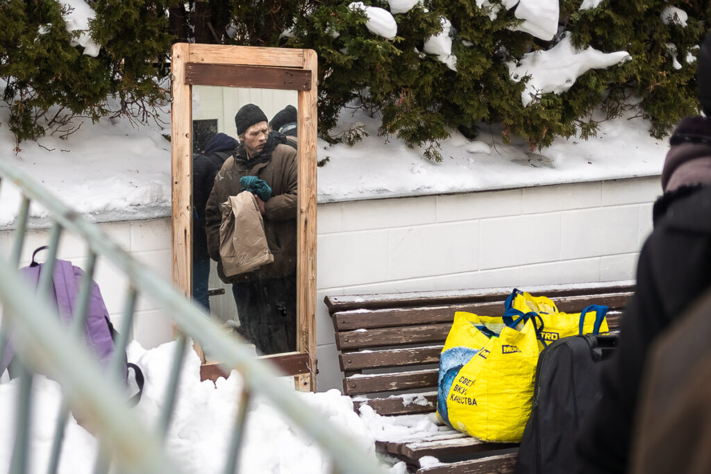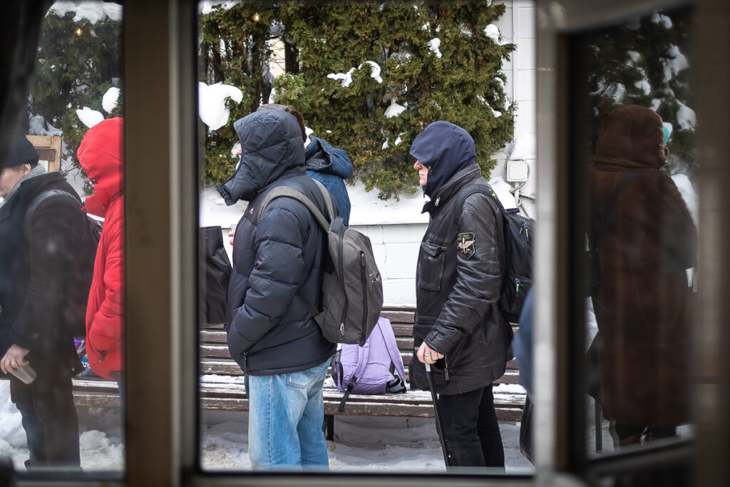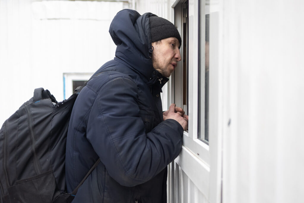 «Колбаса серая! И очереди искусственно создаются», – бормочет пожилой мужчина, ждущий свой бутерброд. Крупный молодой мужик в одном свитере рядом требует, чтобы ему выдали верхнюю одежду. Но курток не только его размера, но и вообще сегодня нет. Он злится и матерится. Ответственный за вагончик Александр Галкин выводит его за ворота. «Бывает, – говорит, – куртку за оградой снимут и сюда идут просить».