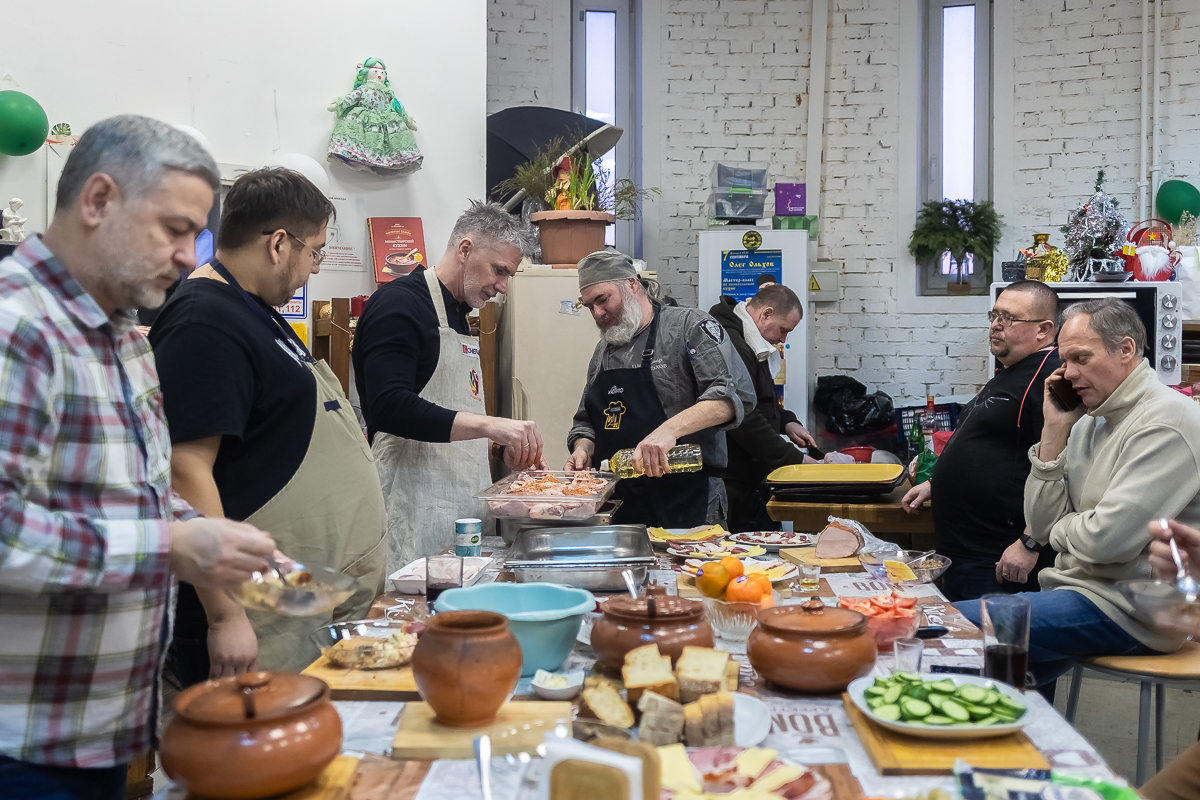 Отмечать юбилей «курские» и их друзья из других волонтерских групп, помогающих бездомным на улицах Москвы, собрались в кулинарной студии Олега Ольхова, руководителя движения. Готовили, угощались, общались и вспоминали…