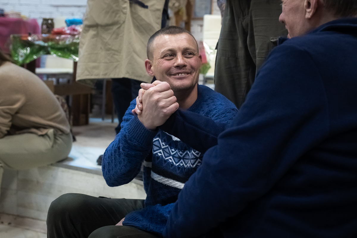 Впервые в вагончик он пришел около 12 лет назад. «Я сложный путь прошел, – рассказывает. – Очень сложный. Знаете, я искал сам себя. Я потерялся в этой жизни. У меня несколько судимостей, я много лет в колонии просидел. Когда последний раз освободился, решил, что надо бросать это все, завязать. Начинал бизнесом заниматься, но постоянно у меня все скатывалось в криминал. Потому что у меня сознание такое было. Опять вляпывался, бросал все. И вот нашел я этот вагончик, где Ольга Викторовна…»