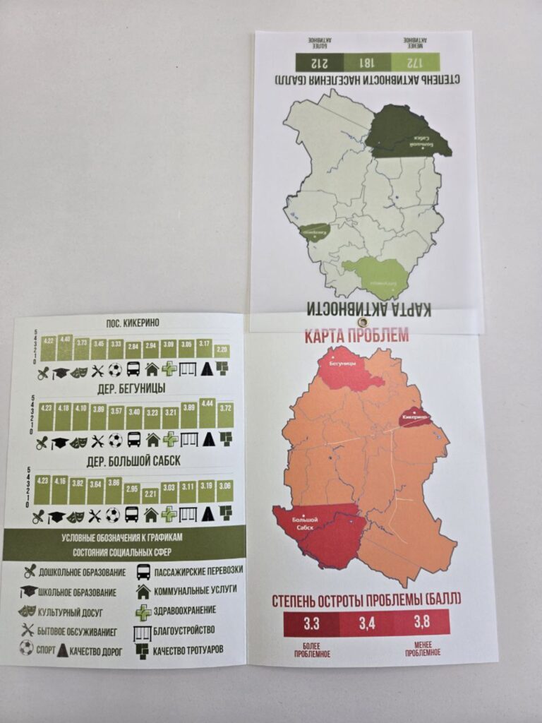 Параллельно с картой проблем составляли карту общественных ресурсов — фиксировали, кто и как готов помогать своей деревне. Например, бывало, что человек готов бесплатно вести секцию, которую хотят жители, но никто об этом не знает. А бывало и такое, что кто-то был готов делиться домашней тушенкой, но не знал, кому ее можно отдать, или кто-то умел стричь и мог делать это бесплатно, но не находил, как применить себя.