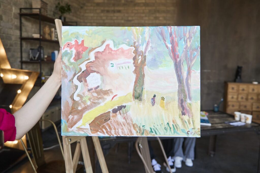 Так и получилось. Актер театра и кино Илья Малаков, рисуя с Викой, честно признался, что доверился более опытному художнику и вместе они создали работу «Вечное лето». Богдан Лисевский вместе с Семеном нарисовали картину «Конь», ставшую сюрпризом даже для самих авторов. Актриса Кристина Бродская и подопечная фонда Настя придумали историю про «День рождения панды».