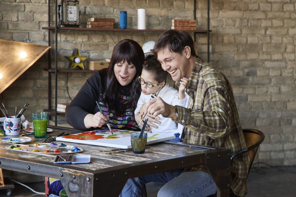 Над картиной склонился подопечный фонда Стас и его взрослый помощник — музыкант Петр Налич. По задумке проекта, холст разделен на две части: на одной уже есть скетч, нарисованный ребенком. После ее закрывают и передают взрослому. Взрослый, видя только окончания линий заготовленного скетча, должен продолжить его на свободной части холста. Затем паре вместе необходимо раскрасить картину полностью.