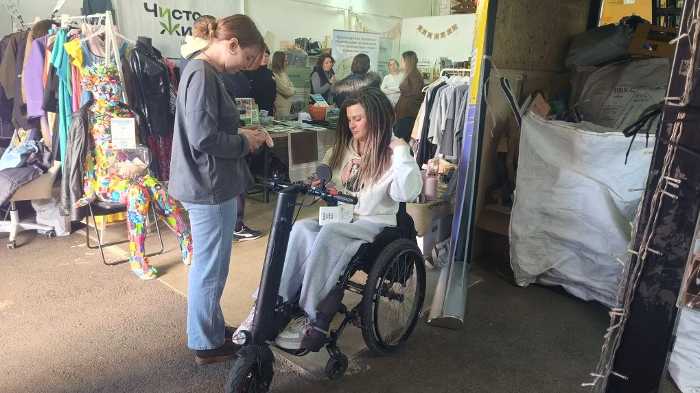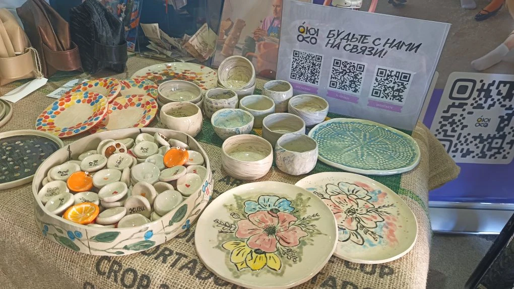 Рядом — керамика: кружки, вазы, тарелки с неровными краями. В каждой вещи — тепло и характер. Автор — гончар с ампутацией ног. Но среди участников ярмарки НКО он прежде всего мастер.