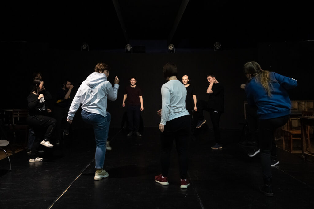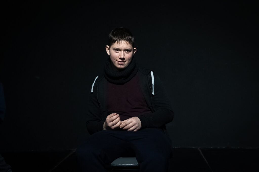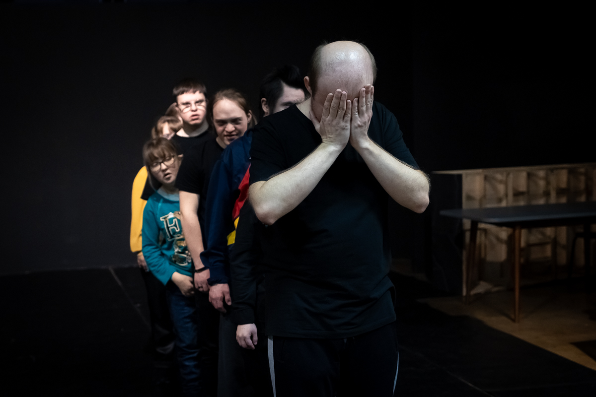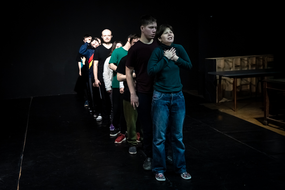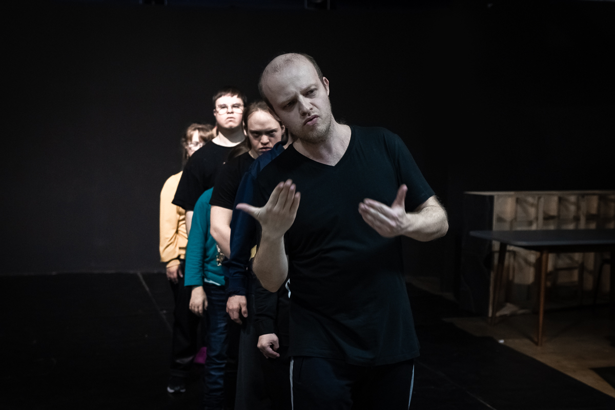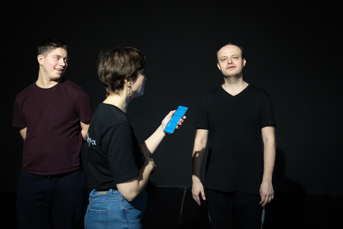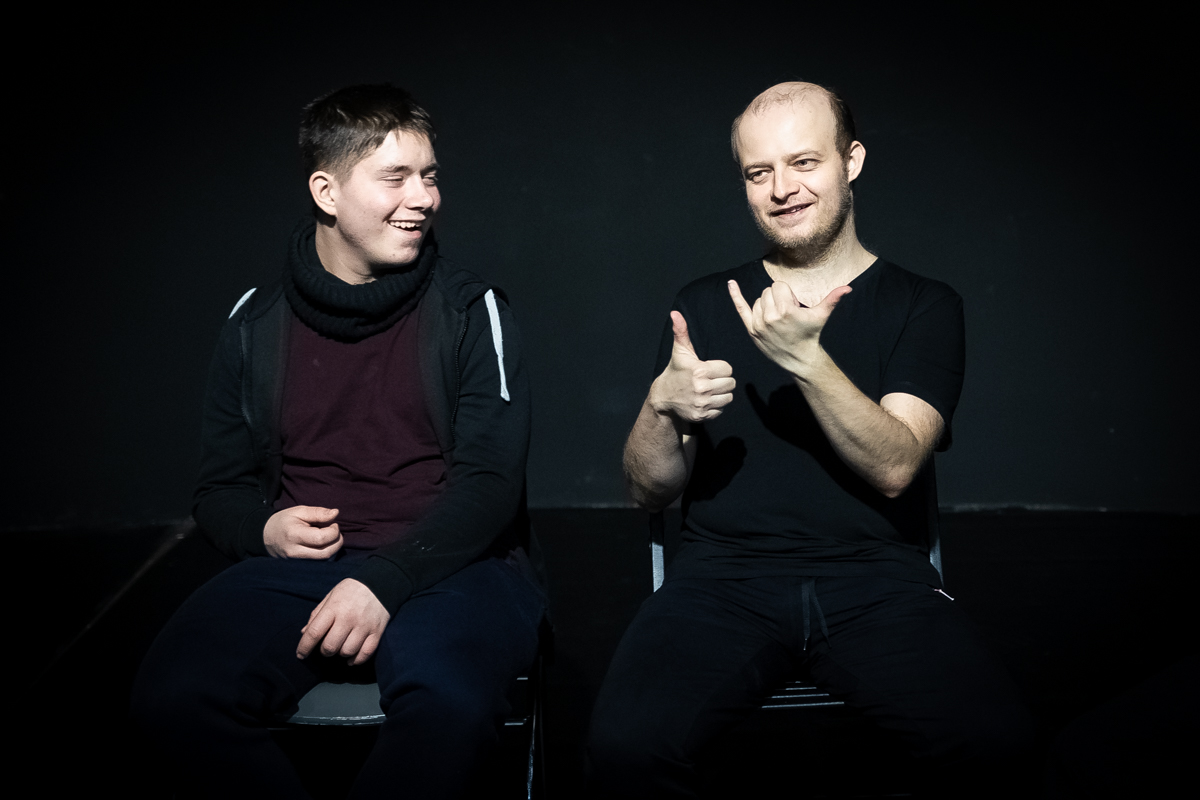 Наши актеры очень много работают и, в отличие, может быть, от профессиональных артистов, все время повторяют материал. Вот Дима, например, перечитывает тексты, смотрит видео. Но если он на репетиции или даже на спектакле сбился, то он начнет с начала, и тут уже ничего не сделаешь. Поэтому у него карт-бланш от Криса, он может вернуться к началу эпизода, и это органично смотрится.