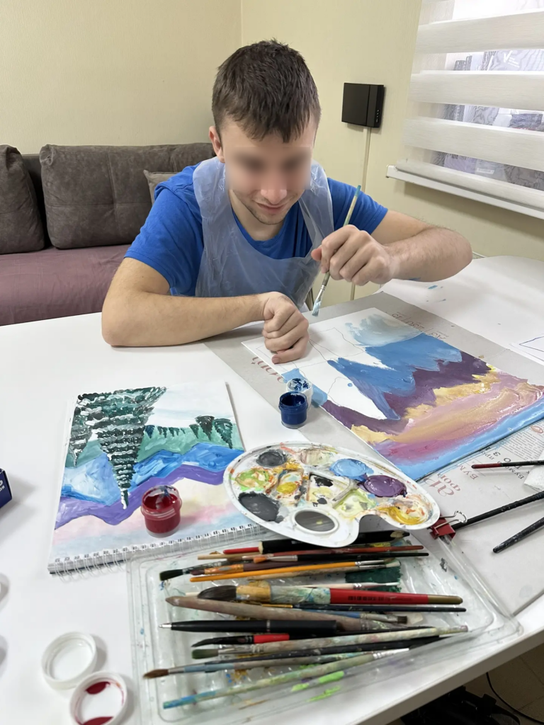 На арт-терапии педагог адаптирует задания под каждого: мелкая моторика страдает, кисть слушается плохо. Но картины получаются настоящие, потому что в них вложено то, чего словами не скажешь. Подростку с ДЦП часто некуда деть то, что внутри. А в творчестве — есть.