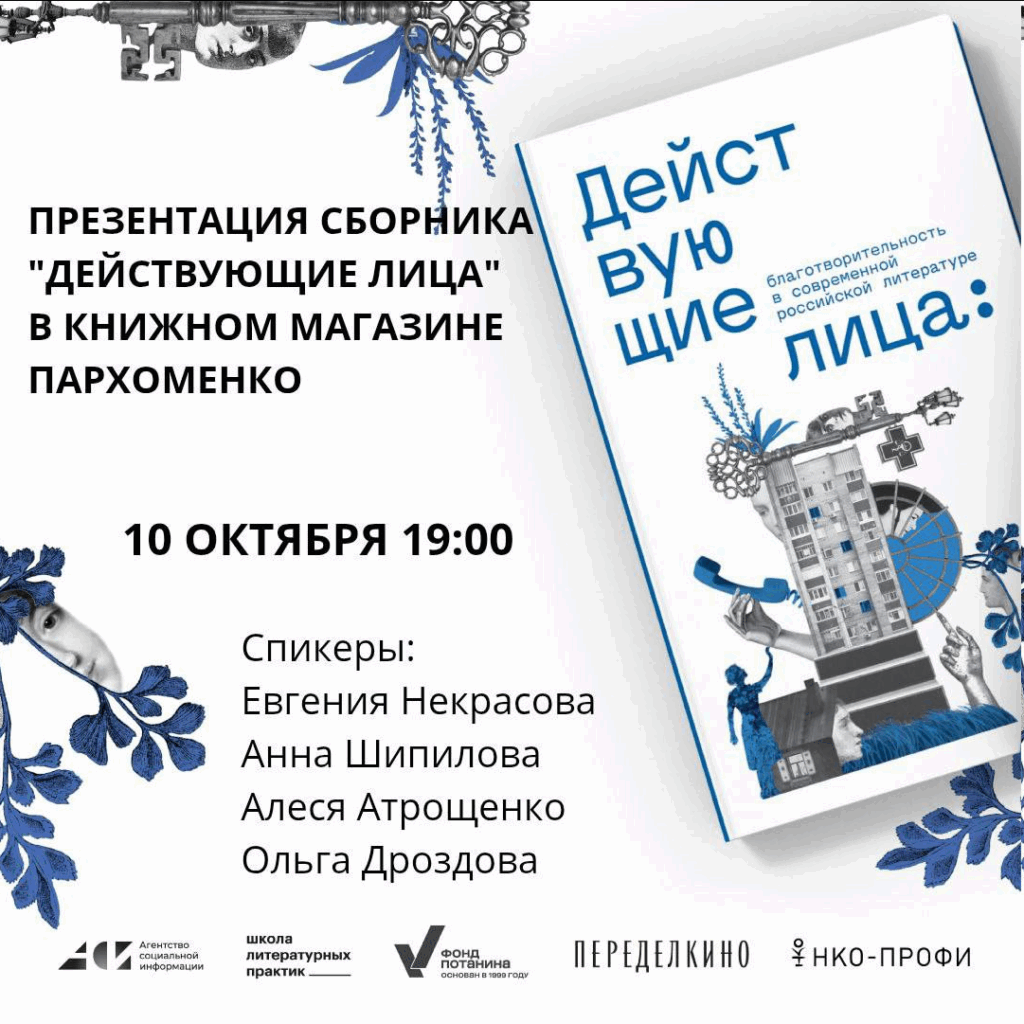 Семейный книжный магазин Анны и Сергея Пархоменко приглашает на презентацию сборника «Действующие лица: благотворительность в современной российской литературе».