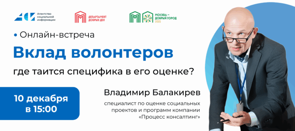 Агентство социальной информации приглашает представителей московских НКО, работающих с социальными волонтерами, на онлайн-встречу «Вклад волонтеров: где таится специфика в его оценке?».