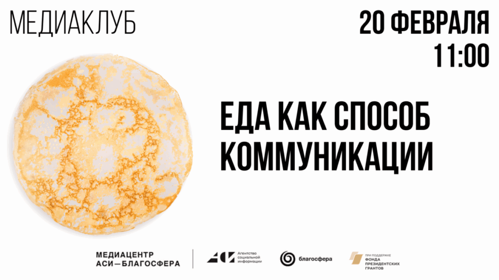 На встрече медиаклуба организаторы предлагают поговорить о том, как мы используем многочисленные культурные и социальные контексты еды для передачи идей и ценностей, объяснения того, как устроена наша деятельность, с целью фандрайзинга или укрепления сообществ.