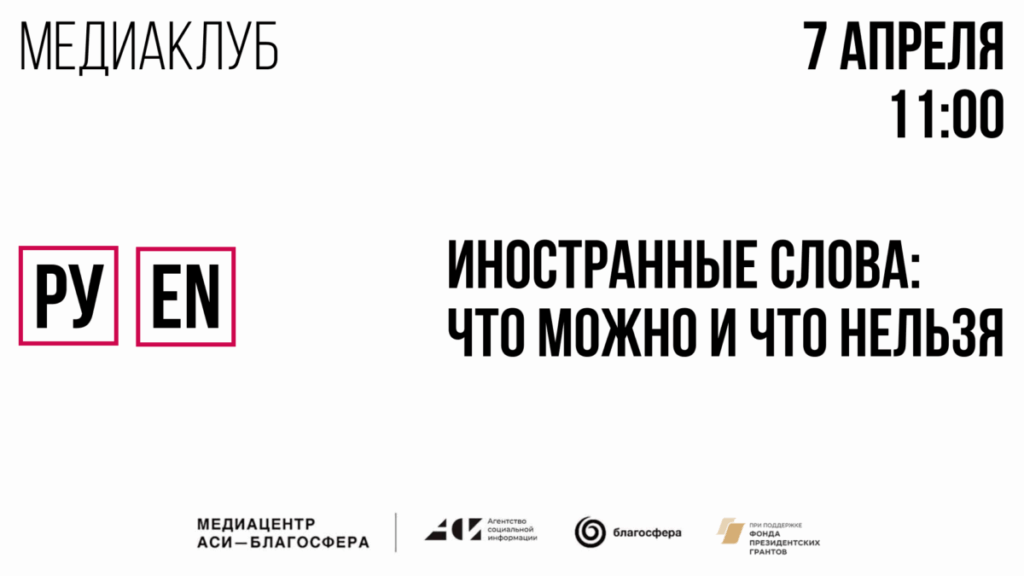 Медиаклуб «АСИ-Благосфера» приглашает представителей некоммерческого сектора на встречу с медиаюристом, чтобы разобраться, как НКО касаются законодательные изменения об использовании иностранных слов.