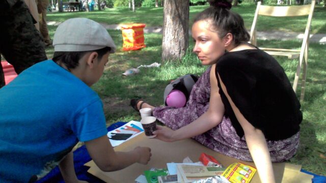 На площадке «Свалка» дети могли узнать о разных аспектах переработки мусора. Волонтеры экологической акции «Зеленая белка» на наглядных примерах показывали: если собирать отходы, перемешивая их, это будет мусор, а если их правильно разделять и сдавать, то получится вторсырье, из которого можно сделать много полезных вещей.