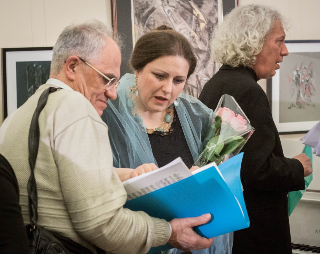 Поэт и переводчик Ольга Седакова прочитала на вечере свои стихи. Ее произведения также прозвучали в исполнении заслуженной артистки России певицы Яны Иваниловой (сопрано). Музыку к ним написали композиторы Валентин Сильвестров, Александр Вустин и Сергей Ахунов. В концерте приняли участие виолончелист Рустам Комачков и пианист Юрий Полубелов. Вел вечер композитор Сергей Ахунов.