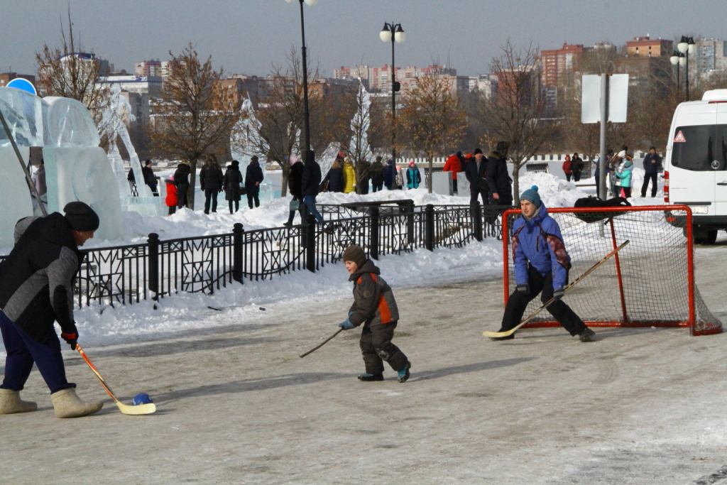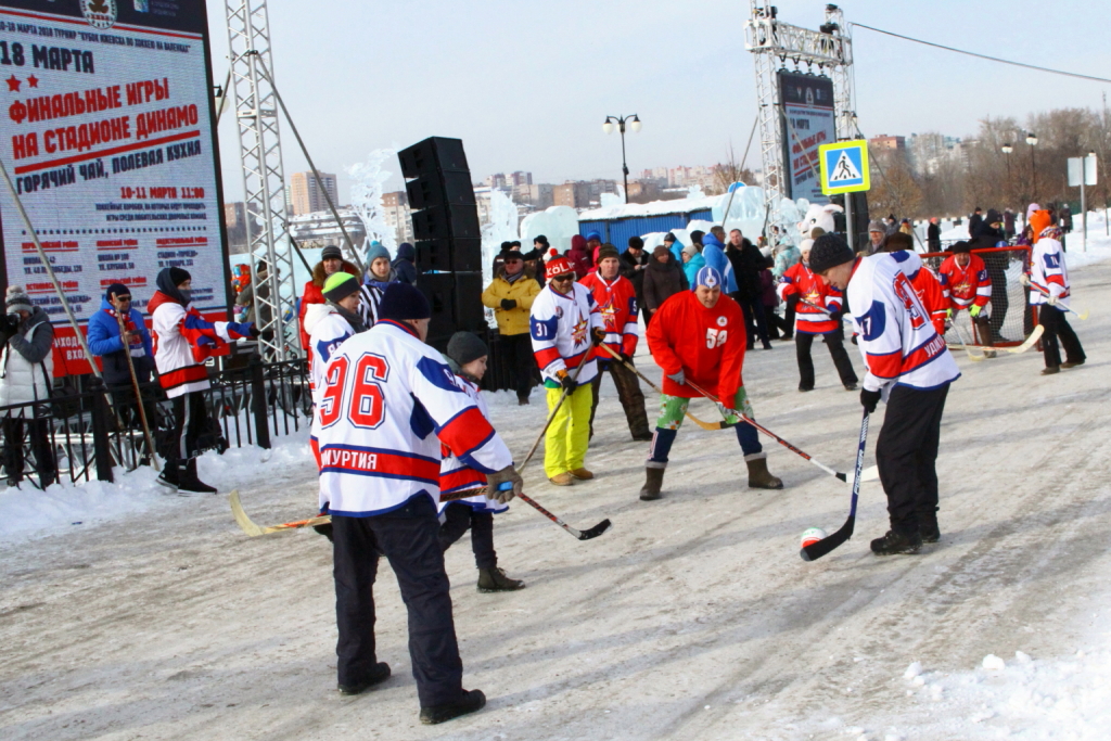 4 марта на набережной ижевского пруда состоялось праздничное представление, приуроченное к открытию первого чемпионата Ижевска среди любителей по хоккею на валенках.