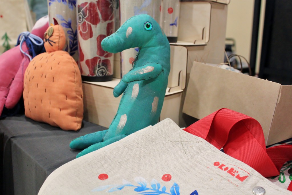 «Мы поддерживаем мастеров из разных уголков страны: валяные игрушки — это работа мастера Татьяны Сапельниковой из Воронежа, вязаные игрушки приехали из Хакасии, мед — из башкирского заповедника «Шульган-таш», резная ложка ручной работы — из Алтайского заповедника, чай — из национального парка «Угра», — рассказывает сотрудница стенда фонда «Заповедное посольство».