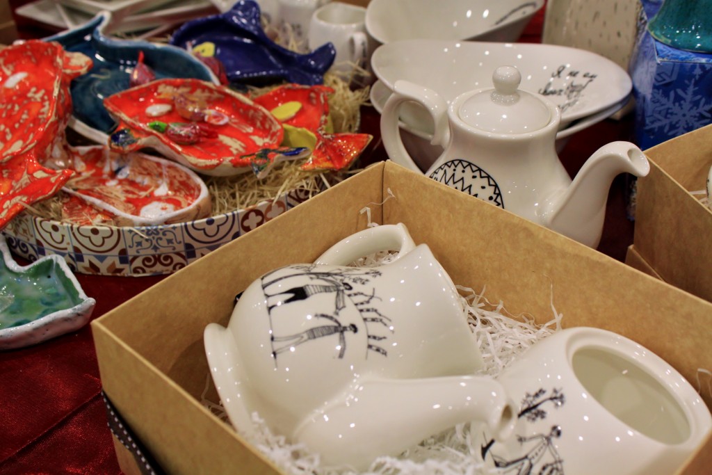 Центр лечебной педагогики был представлен сразу несколькими мастерскими: «Артель блаженных», мастерская ТОК, керамические мастерские «Дом Инны Эмейзинг» и «Особая керамика». В «Доме Инны Эмейзинг», например работают с керамикой и деревом. Названий у коллекций нет — каждый может выстроить свои личные ассоциации.