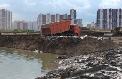 Первыми на бесконечную грязь и пыль до 3-4 этажей пожаловались жители Красносельского района. В течение недели вдоль их домов и днем, и ночью проезжают грузовые машины. Они двигаются между Юго-Западной ТЭЦ и улицей Маршала Казакова, от улицы Доблести и до Финского залива. На берег залива и к устью реки Красненькая свозят бетонные блоки, арматуру, камни, кирпичи, грунт и глину. Заезд на несанкционированную свалку проходит через отдел полиции №74. Кроме того, обращения в общественное движение «Красивый Петербург» поступали и от жителей Московского района, в котором расположен СКК. Под проезд грузовых машин регулярно используется не приспособленная для этого Кузнецовская улица.
