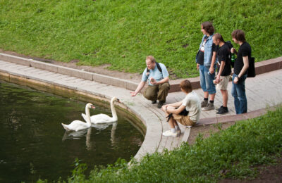 Сходы — самое простое, но не единственное решение проблемы. Можно установить на пруду плоты, можно сделать отсыпку, чтобы берег стал более пологим, можно демонтировать вертикальные береговые линии на городских прудах.