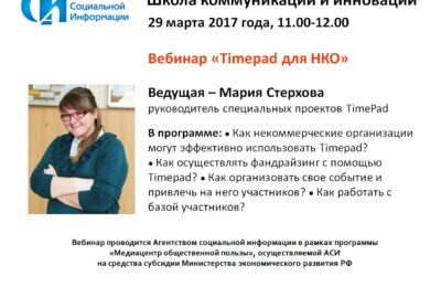— видеокурс из трех частей: социальное проектирование, психологическое общение и арт-технологии – с 3 по 30 апреля;