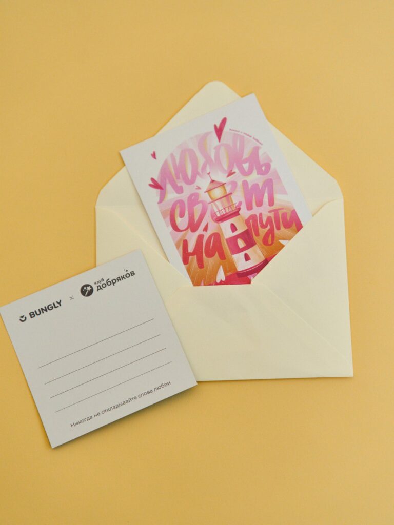 Чтобы отправить послание близкому человеку, достаточно зайти на страницу акции, выбрать понравившуюся открытку и оставить текст. Сотрудники BUNGLY аккуратно перепишут его и отправят почтой по указанному адресу. Формула проста: одна открытка — одна покупка — одно важное послание.