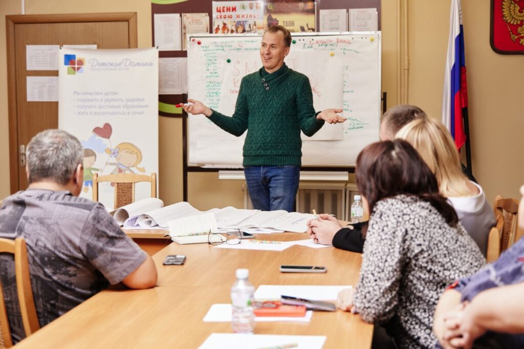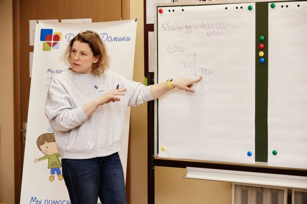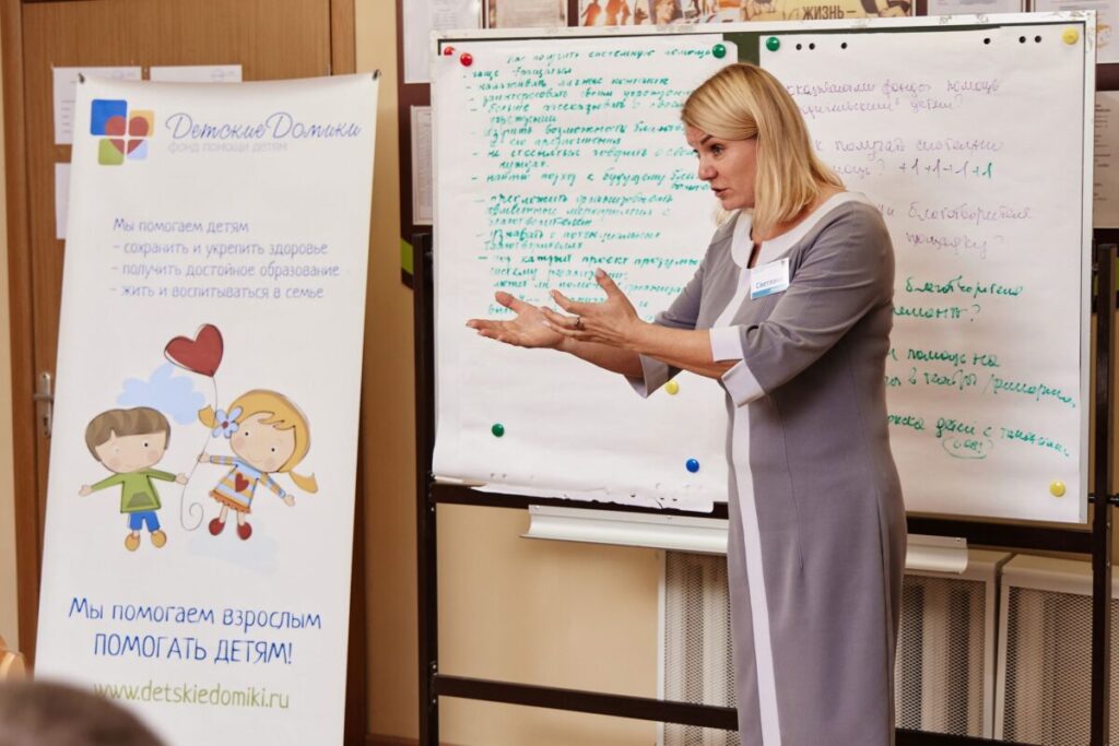 Участники познакомились, рассказали об особенностях своей работы, обсудили, где особенно нужна помощь благотворителей и волонтеров, и составили список НКО, помогающих детям в интернатной системе. Директор фонда «ДетскиеДомики» Светлана Розанова поделилась опытом работы фонда с благотворителями и волонтерами, рассказала о наиболее эффективных вариантах сотрудничества и ответила на вопросы.